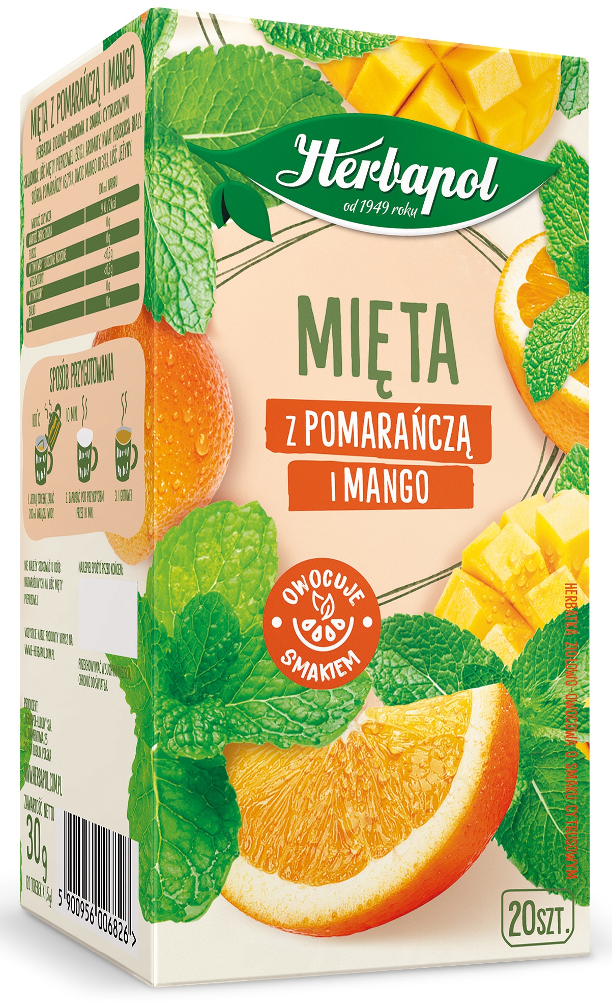 ➡️ Herbapol Mięta z Pomarańczą i Mango to niezwykła herbata, która łączy w sobie orzeźwiającą miętę z soczystymi nutami pomarańczy i mango, tworząc niezapomniany smakowy doświadczenie.