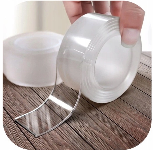 В прозрачной бесследной ленте используются новые нанотехнологии и гибкий материал. Это прочный и прочный и после использования не оставляет следы на предмете, не повреждает стены, не оставляет липкой поверхности.