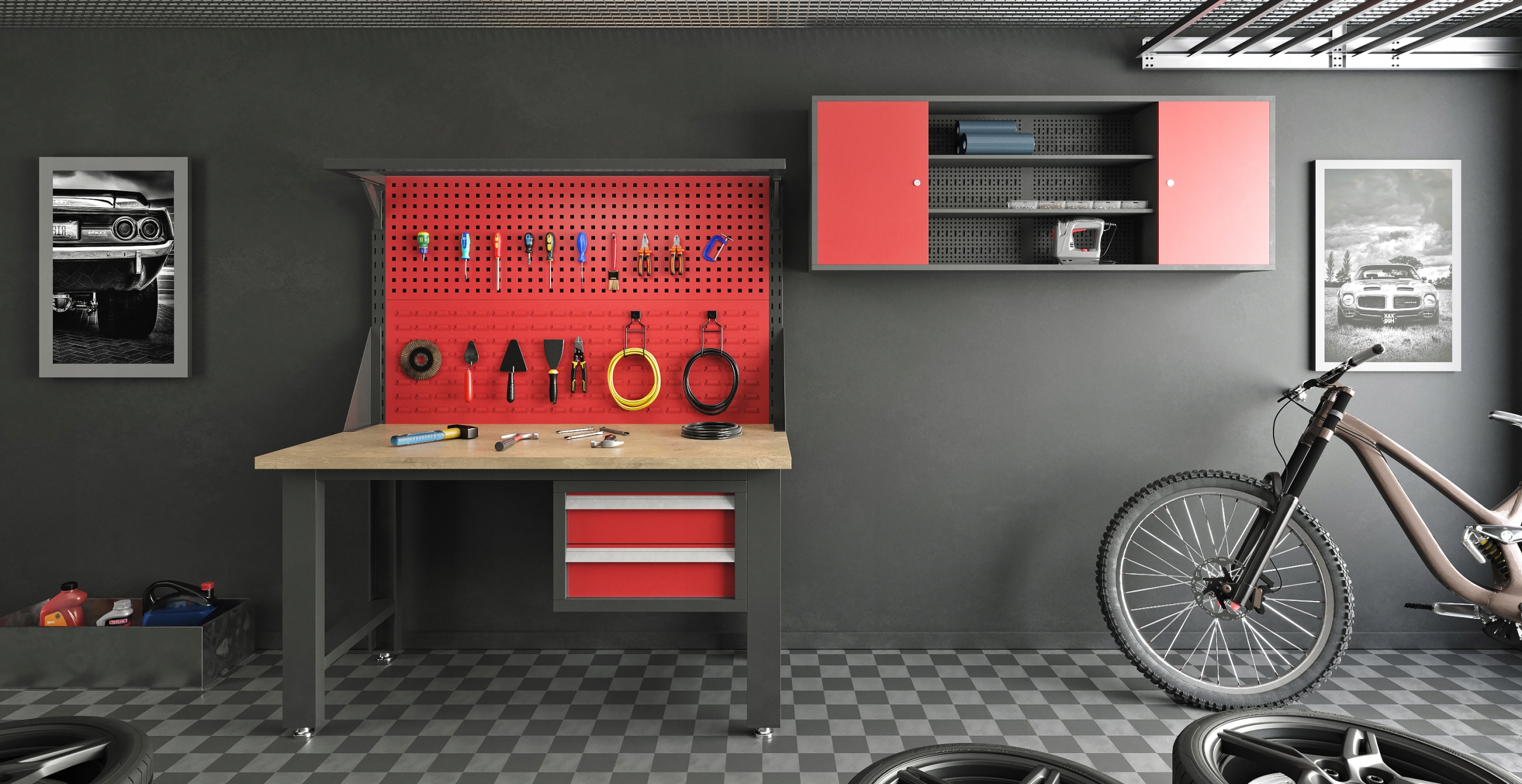 SOLIDNA WARSZTATOWA SZAFA NARZĘDZIOWA WISZĄCA "BEN" MARKI JAN NOWAK - antracytowo-czerwona