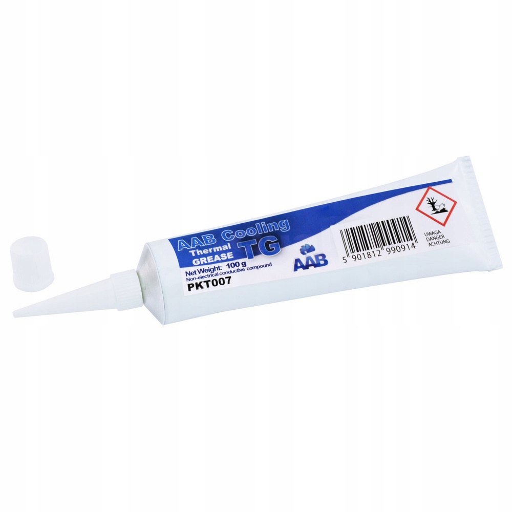 AABCOOLING Thermal Grease to wysokiej jakości silikonowa pasta termoprzewodząca, która nie przewodzi prądu elektrycznego. Produkt ten jest niezbędny do prawidłowego przewodzenia ciepła z układów emitujących ciepło, elektroniki czy mikroelektroniki.