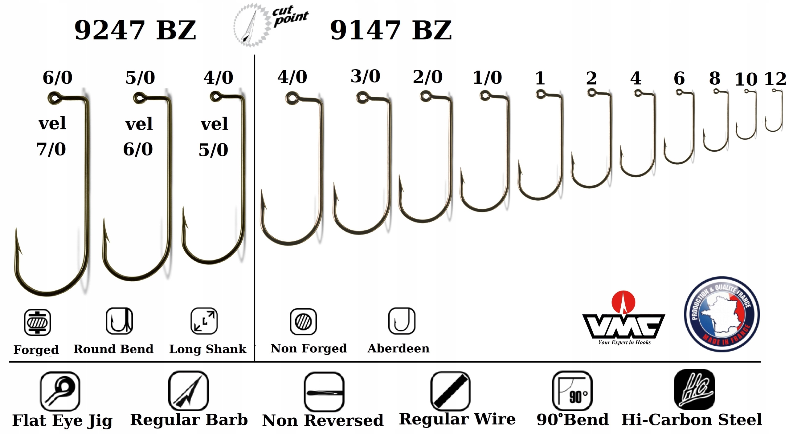 Freshwater Aberdeen-shape jig hook with 90° bend and regular shank