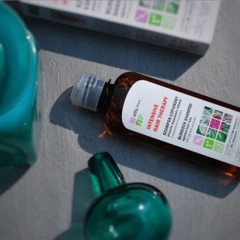 Szampon łopianowy delikatnie i skutecznie oczyszcza skórę głowy i przygotowuje ją do maksymalnego przyjmowania substancji aktywnych serii Intensive Hair Therapy.