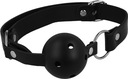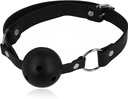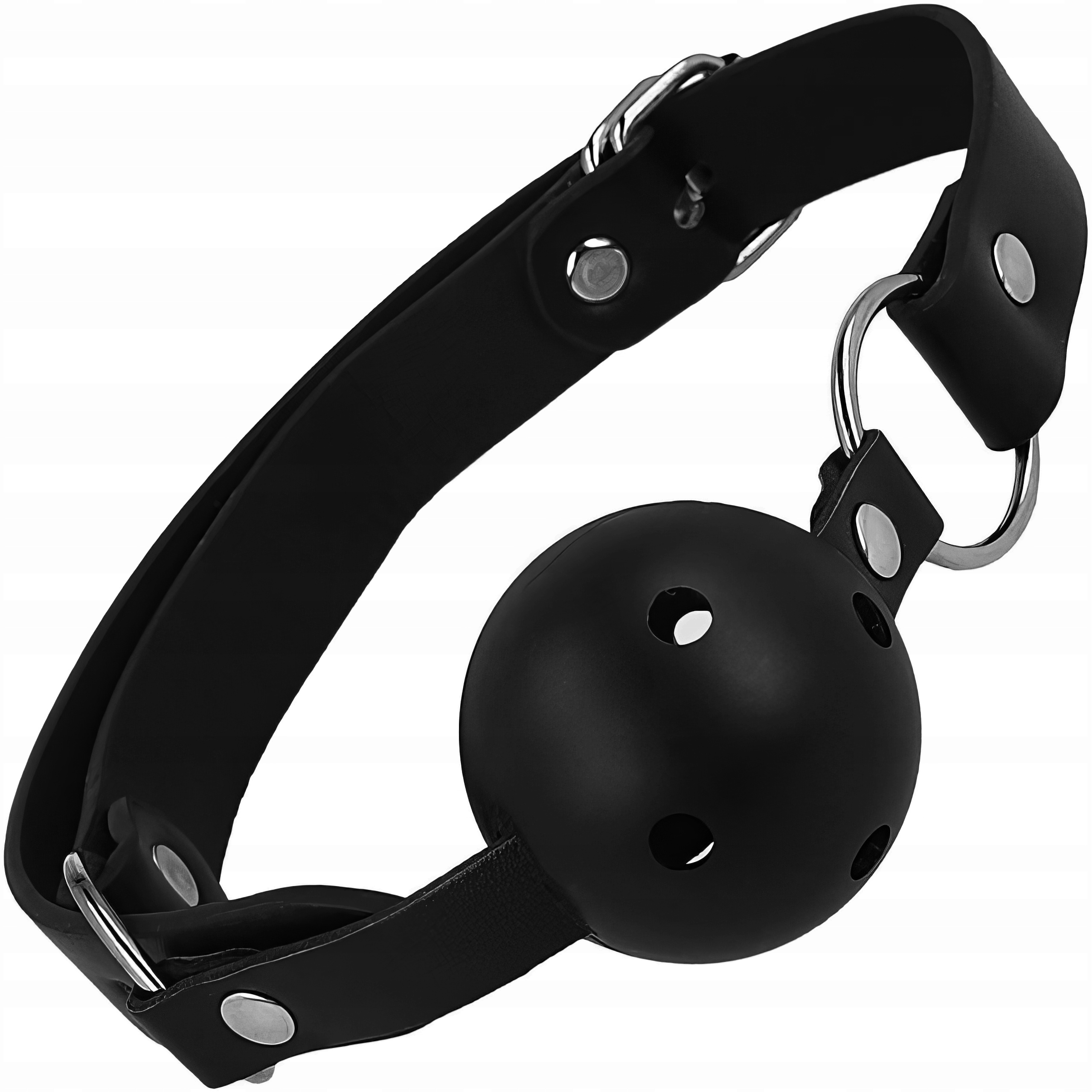 Klasyczny knebel z kulką. Posiada regulację długości paska oraz dziurki wspomagające oddychanie.