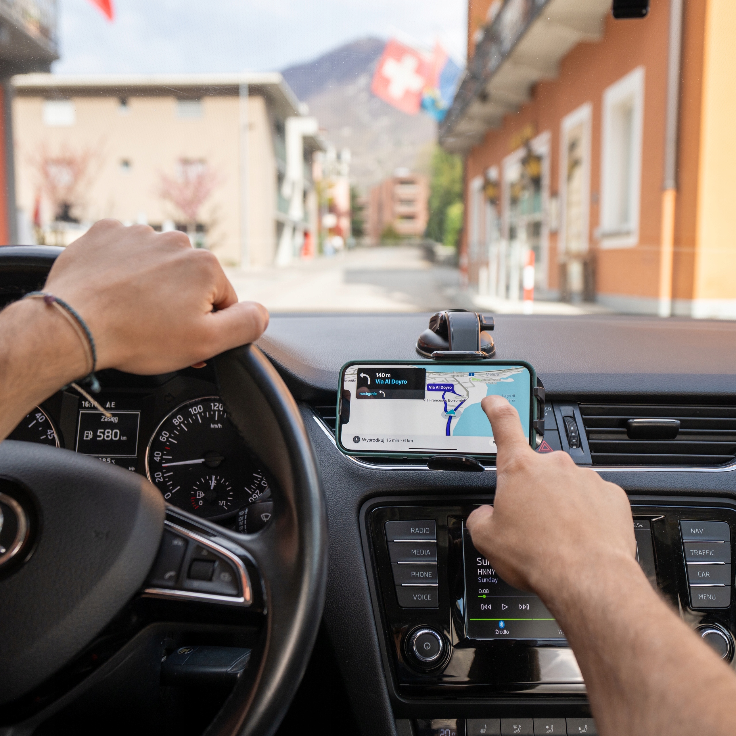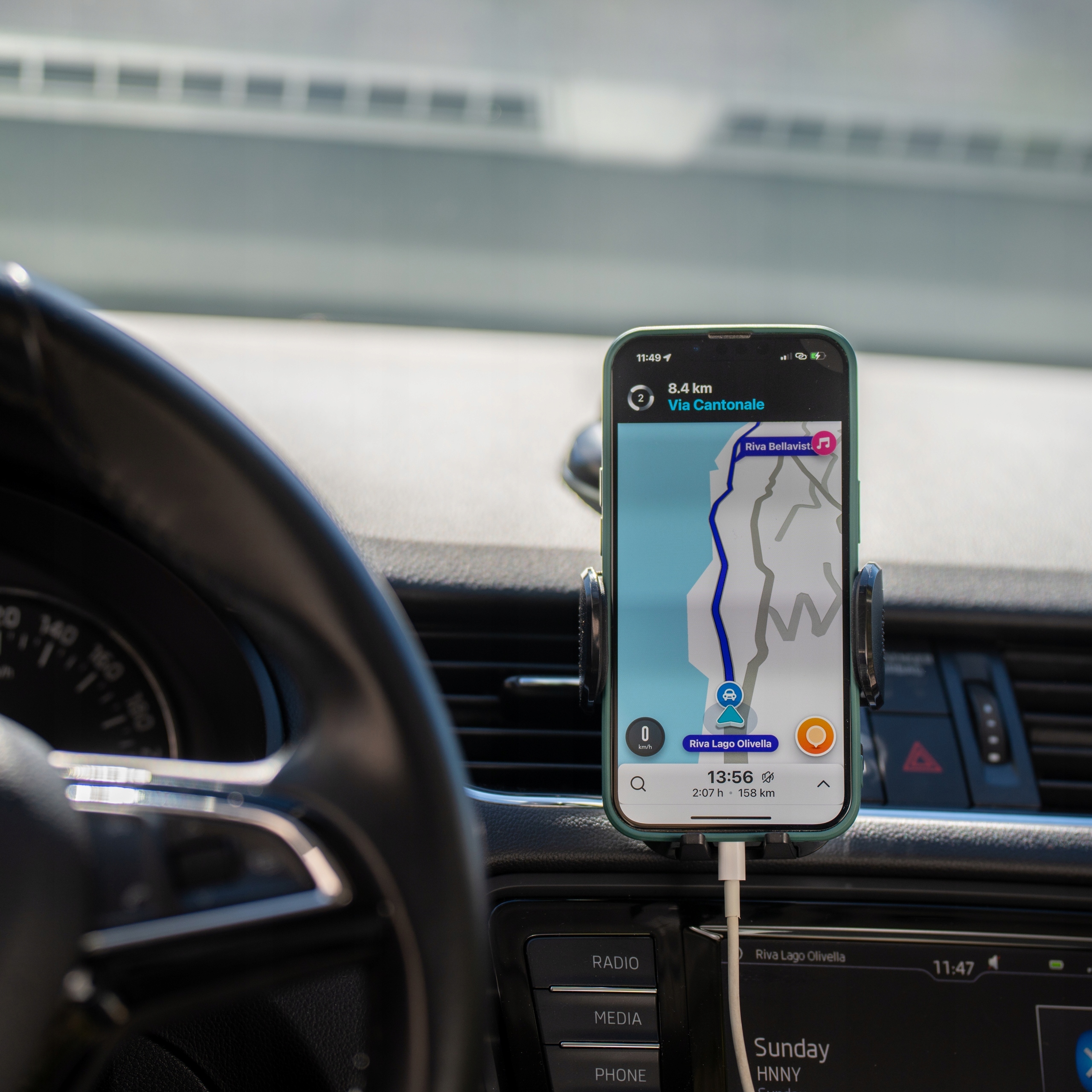 Urządzenie zamontowane na profilowanym wysięgniku nie ogranicza pola widzenia podczas jazdy. Sam uchwyt dodatkowo wyposażony jest w głowicę obrotową umożliwiającą ustawienie telefonu w dowolnej pozycji. Idealne rozwiązanie dla kierowców, którzy nie chcą lub nie mogą uchwytu montować na kratce nawiewu oraz jednocześnie nie chcą w żadnym stopniu ograniczać pola widzenia podczas jazdy.