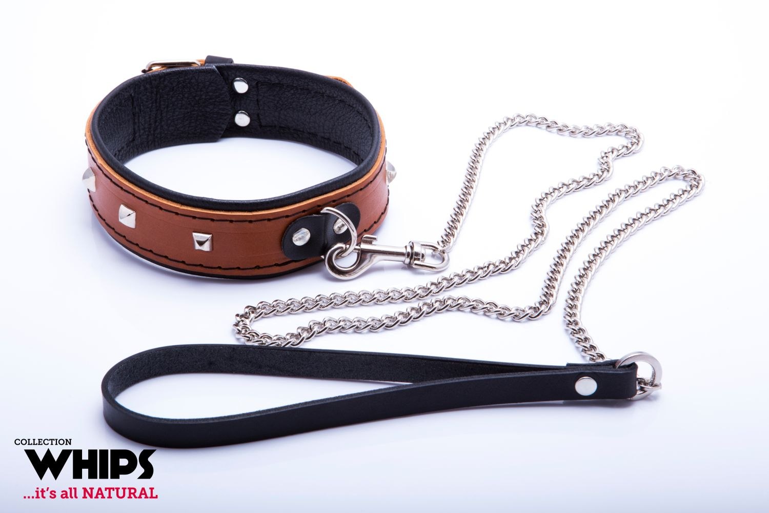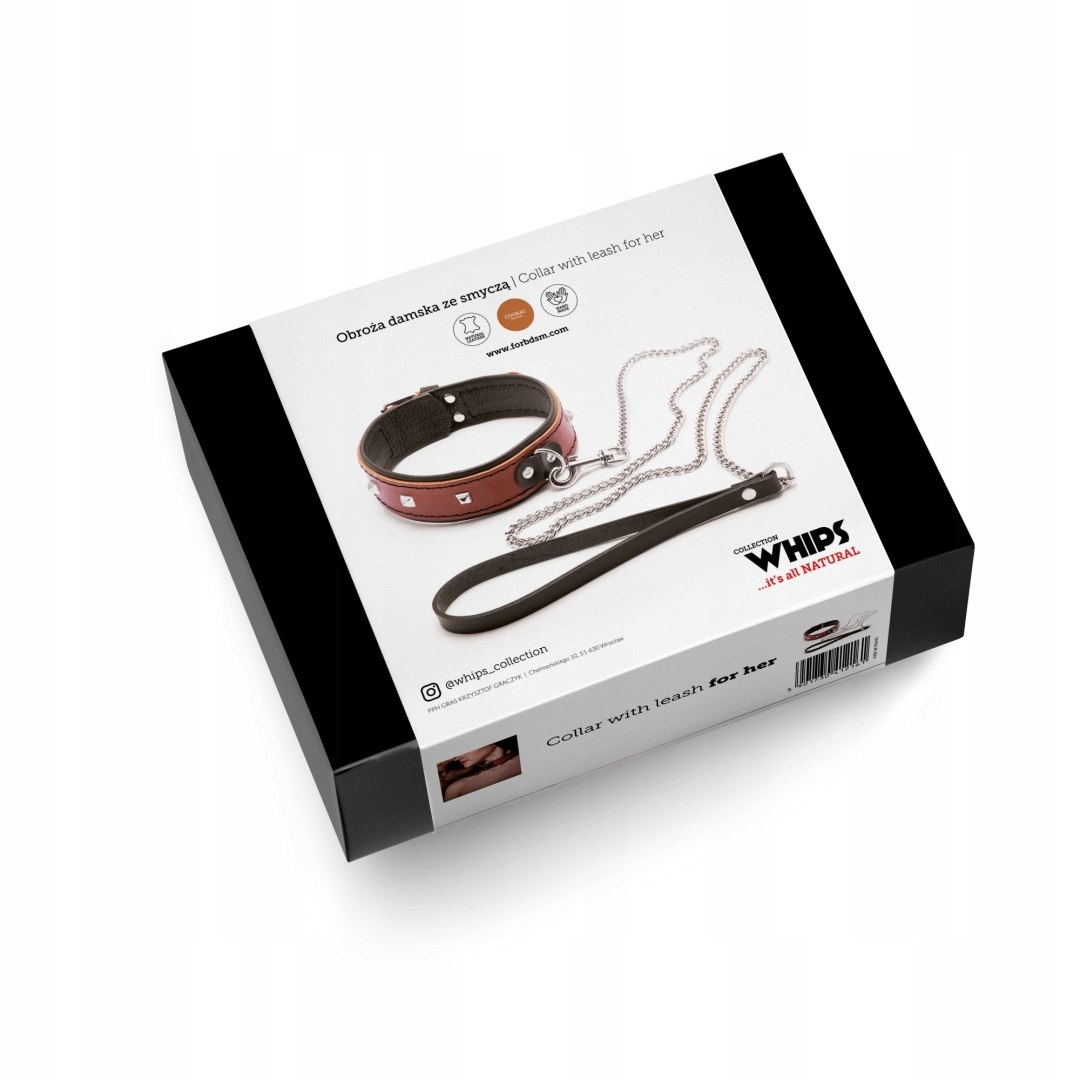 Wiązania-WHIPS obroża damska ze smyczą, koniakowa