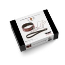 Obroża jest zapinana na masywną klamrę z możliwością regulacji rozmiaru.