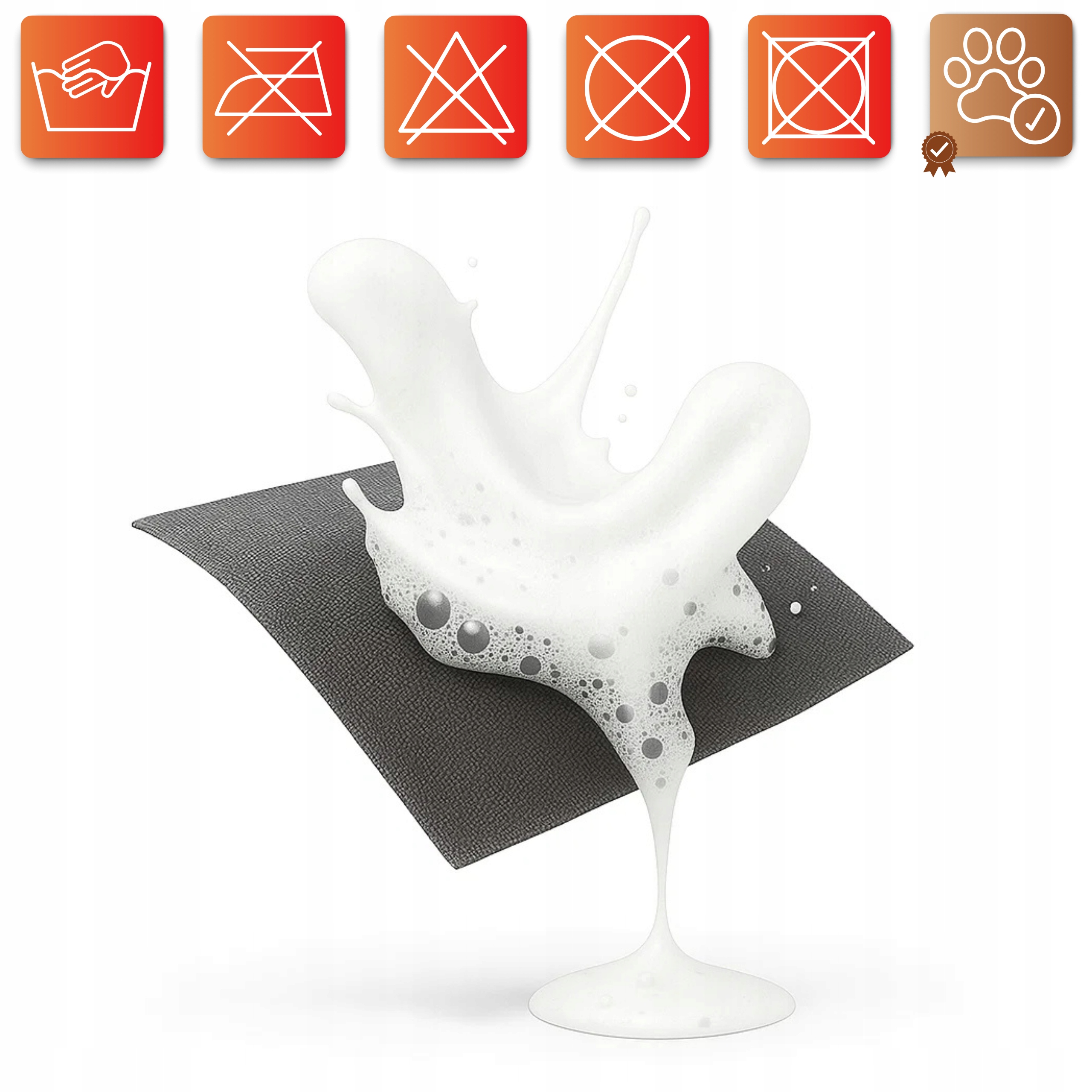 ✅ Czyszczenie plam – zalecane stosowanie delikatnych detergentów, roztworu wody z mydłem lub specjalistycznych środków do tapicerki.