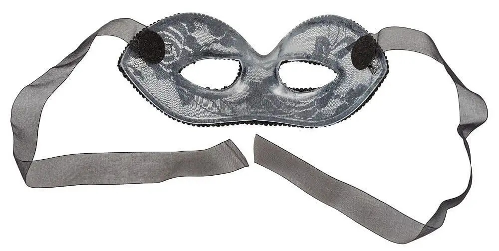 Czarna koronkowa maseczka z otworami na oczy. Wiązana z tylu za pomocą wstążki. 100% poliester.