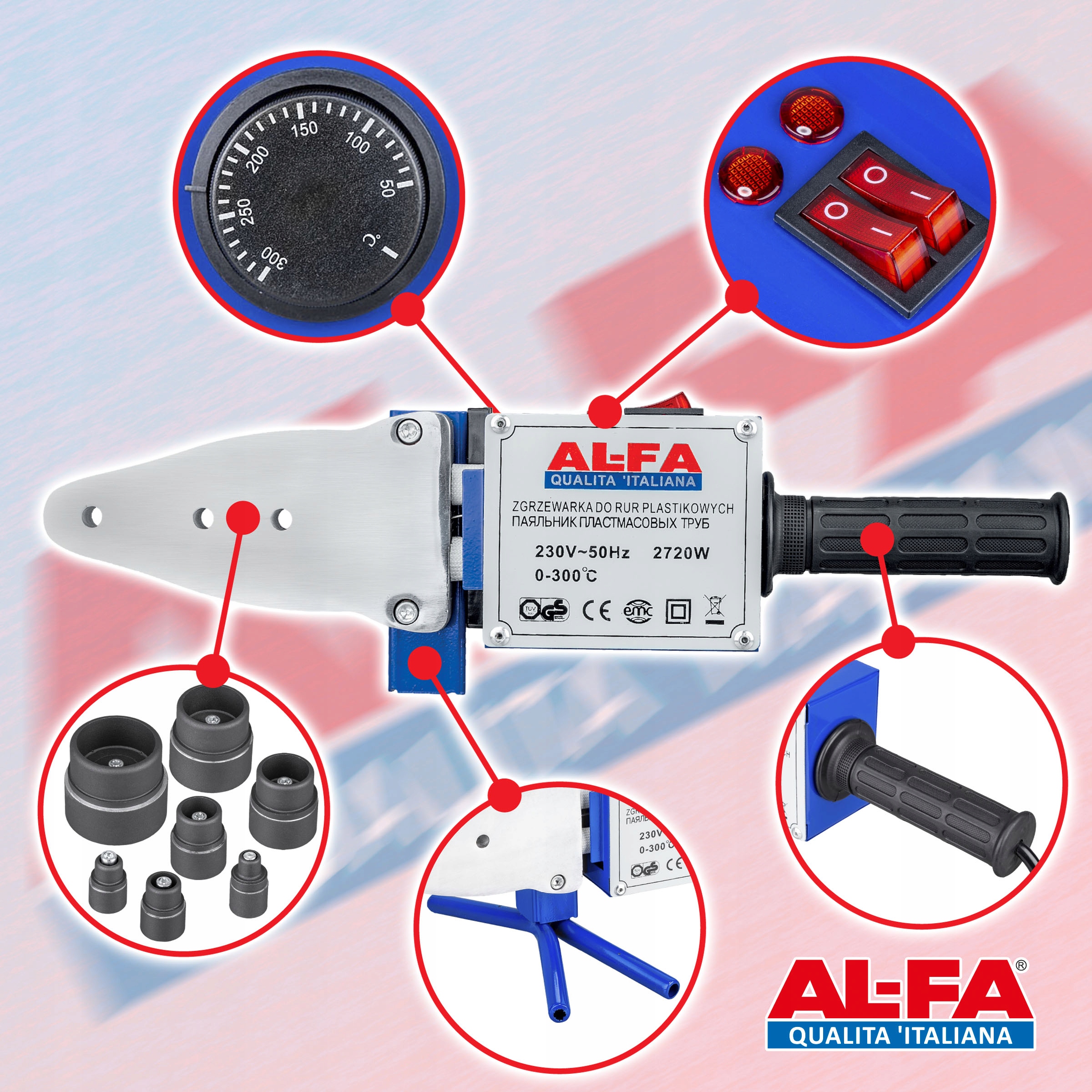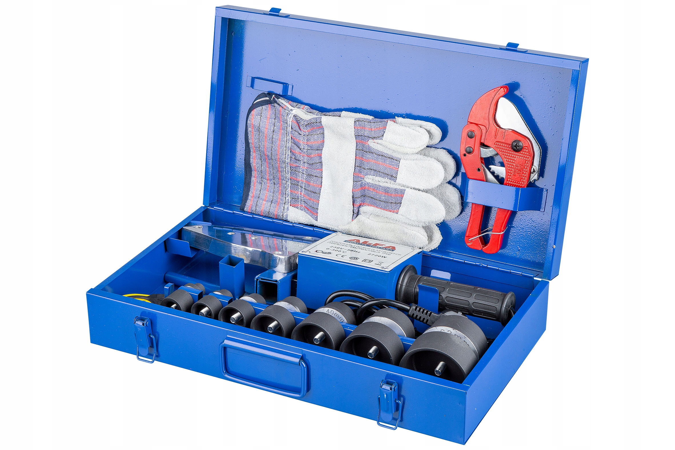 W zestawie znajdują się matryce grzewcze umożliwiające pracę z rurami o średnicach od 16mm do 63mm. Każda matryca pokryta jest powłoką teflonową, która zapobiega przywieraniu tworzywa i ułatwia pracę.