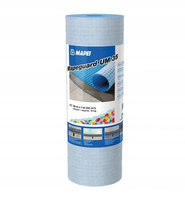 Mapeguard UM35 to podpłytkowa membrana uszczelniająco rozprzęgająca, zapobiegająca spękaniom, wykonana z polietylenu o dużej gęstości (HDPE) oraz włókniny polipropylenowej o specjalnym kształcie plastra miodu. Stosowana przed montażem okładzin ceramicznych i kamiennych wewnątrz i na zewnątrz.