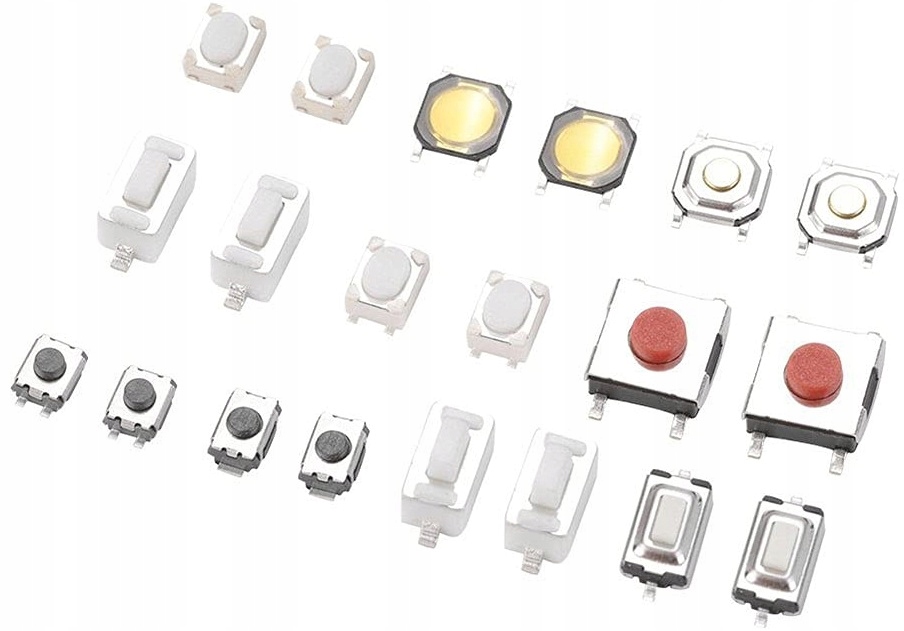 W zestawie najbardziej popularne przyciski stosowane w pilotach i kluczykach samochodowych oraz w sprzęcie car audio. Mikroprzełączniki min. do BMW, Renault i aut grupy VAG. Wykorzystywane również w elektronice użytkowej.