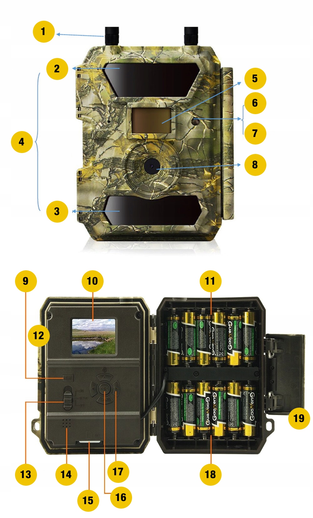 Устройство после установки SIM-карты и SD-карты будет служить сигналом тревоги с камерой. После при обнаружении движения PIR-датчиком будет немедленно сделана видеозапись и / или фотография. На телефон в виде SMS или на почтовый ящик мы можем сразу после тревоги получить сделано фотография.