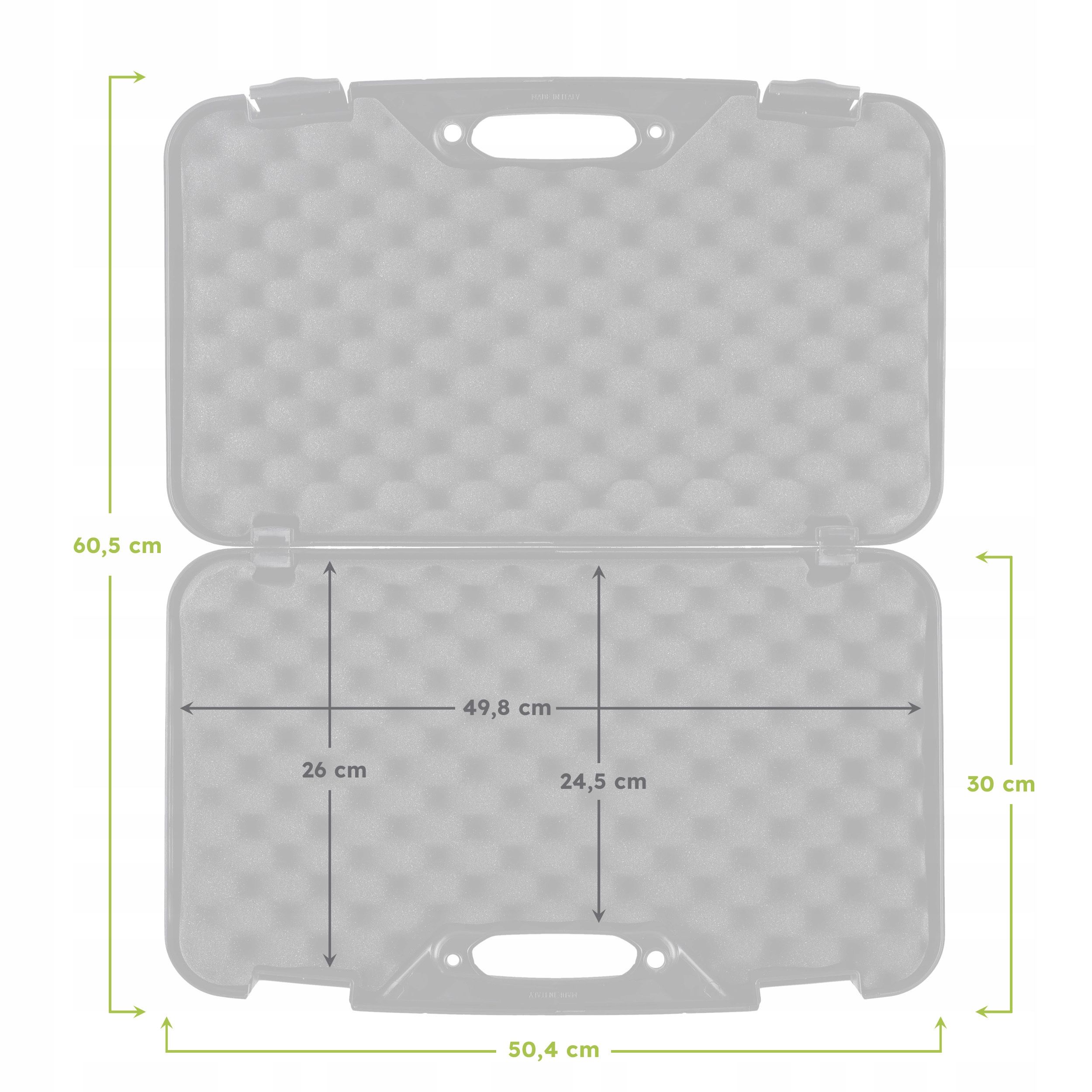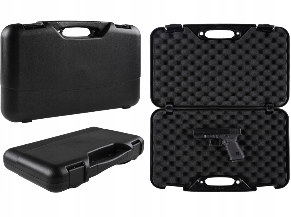 Kufer do transportu broni krótkiej, wykonany z wytrzymałego tworzywa, wyłożony grubą gąbką o strukturze tzw. szczęki rekina – tak aby broń podczas transportu nie miała możliwości przesuwu.