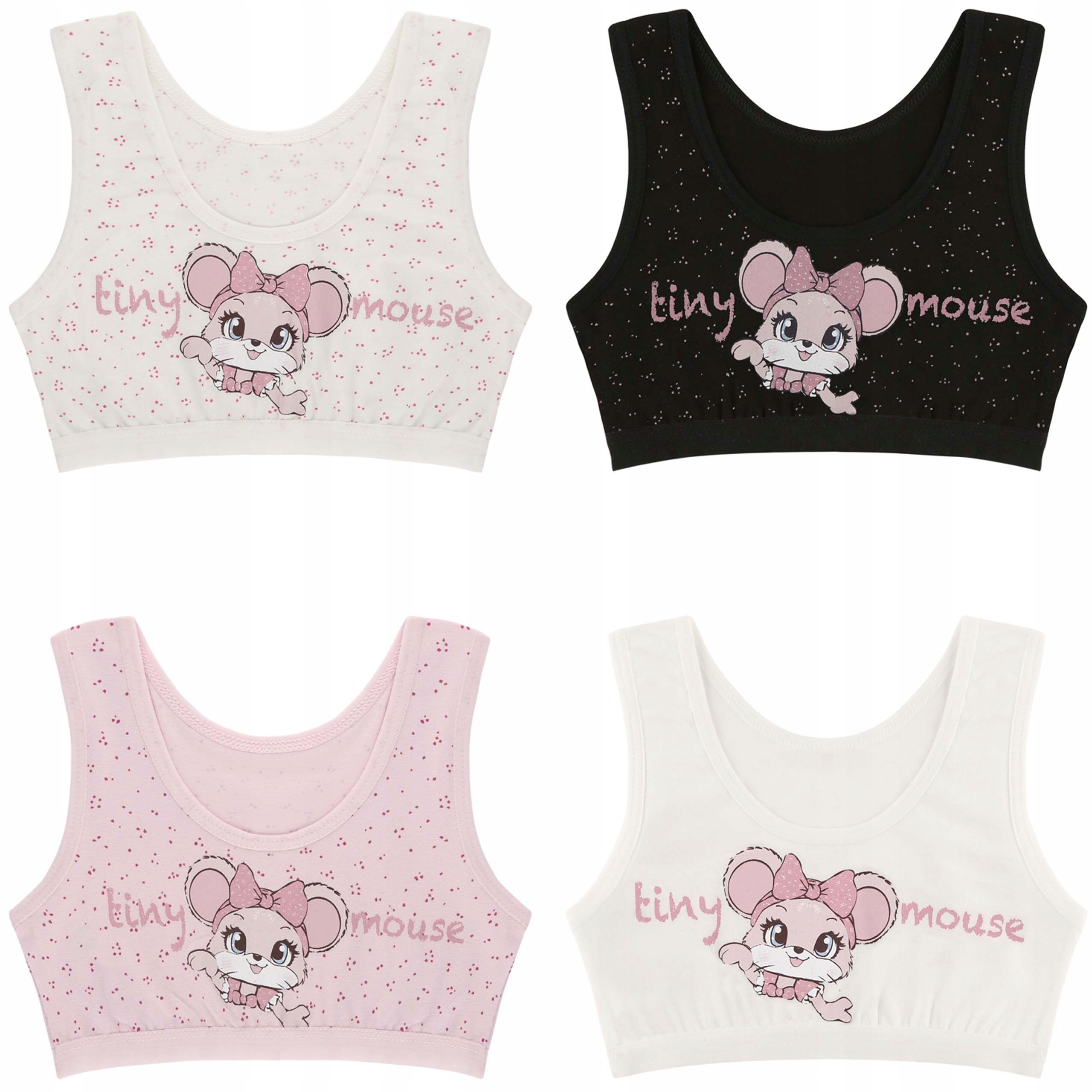 Śliczny zestaw 4 sztuk staników dziecięcych.