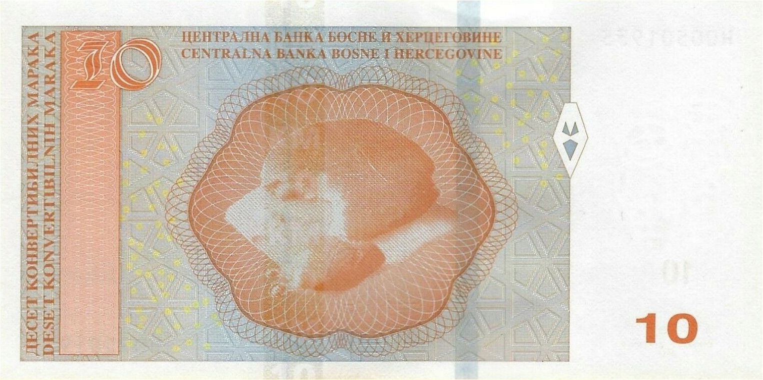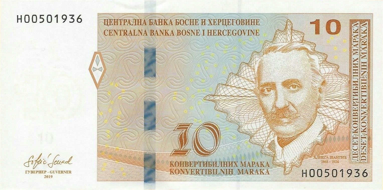 Przepiekny banknot 10 Konvertibilnih Maraka z Bośnia i Hercegowina - 2019r. (P-81) w absolutnie doskonalym stanie bankowym I (UNC).