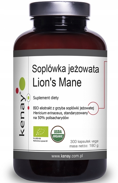 Składniki: ekologiczny ekstrakt z grzyba soplówki jeżowatej (owocniki) Hericium erinaceus, standaryzowany na polisacharydy: 50%; kapsułka: hydroksypropylometyloceluloza.