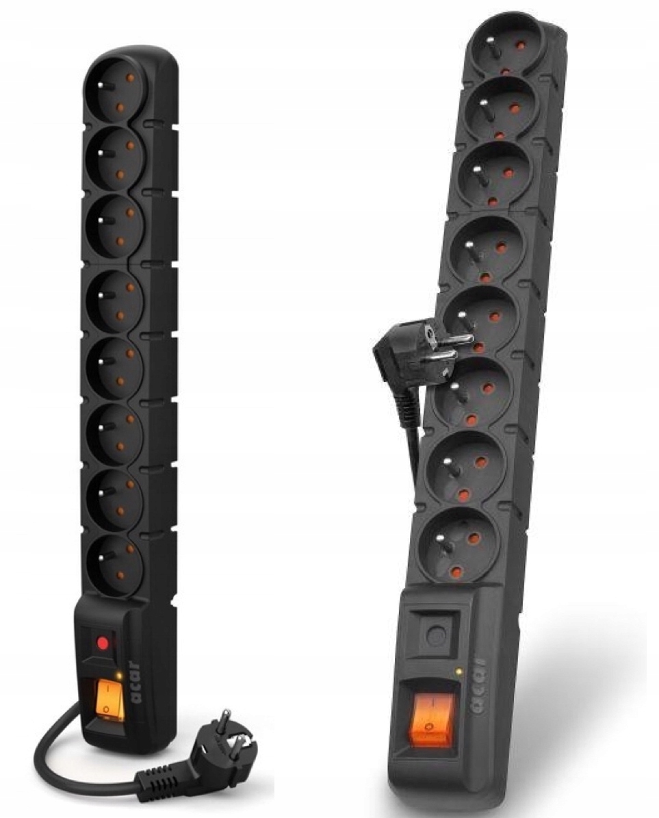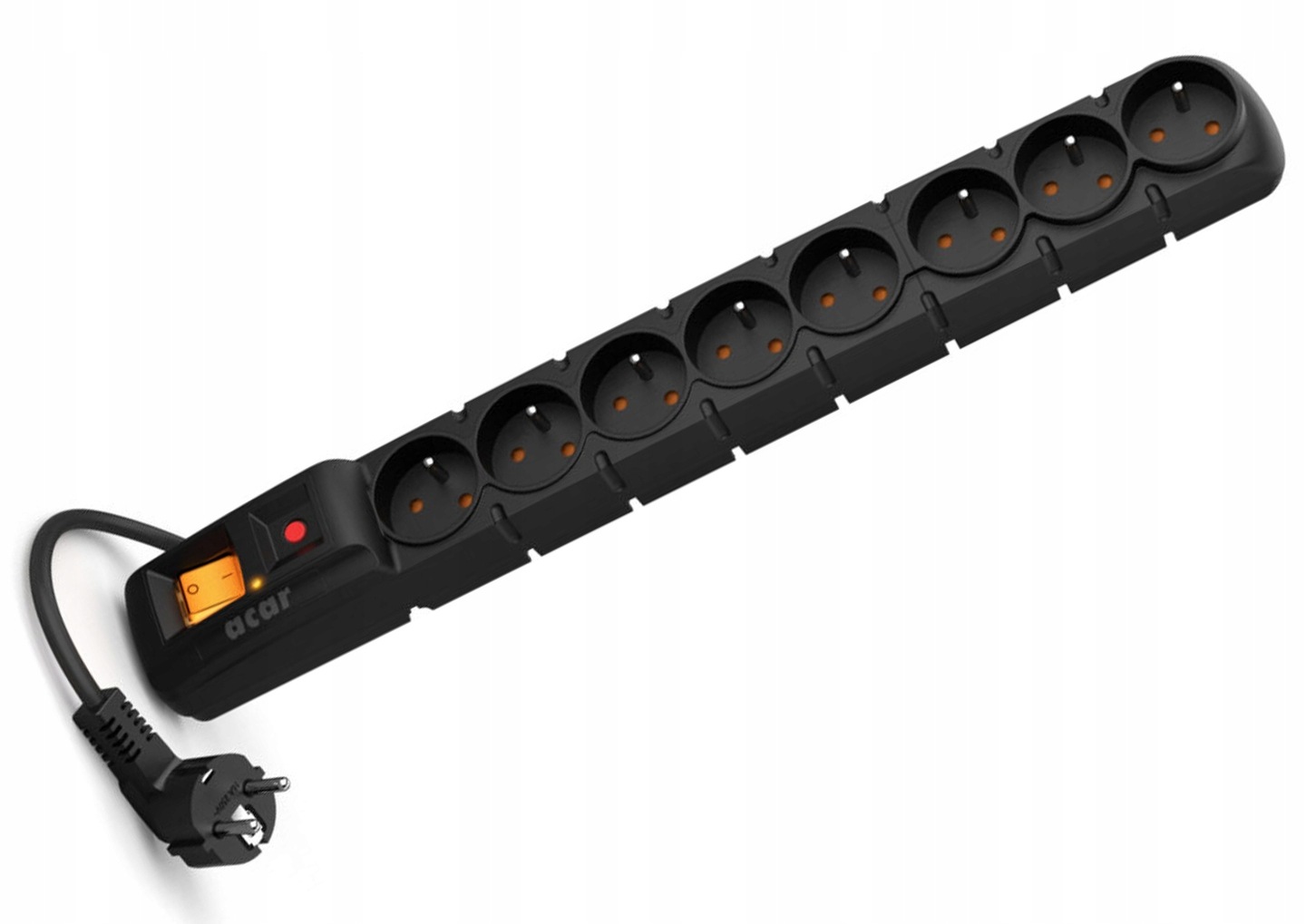 Acar S8 Высокое качество подтверждается многолетним опытом польского производителя. Устройство является в качестве универсальной защиты он может выполнять основные защитные функции как компьютерные системы (настольные компьютеры ,ноутбуки, мониторы, принтеры, сканеры и т. д.) как и аудиовизуальных (LCD / OLED, DVD/BD-плееры, ресиверы, усилители). Современный и элегантный корпус позволяет разместить его в любом удобном и видном месте (письменный стол, шкаф), а стройный силуэт занимает мало места. Восемь защищенных розеток 230 В с заземлением и защитных плафонов и автоматического предохранителя достаточно для большинства применений в офисе и дома.