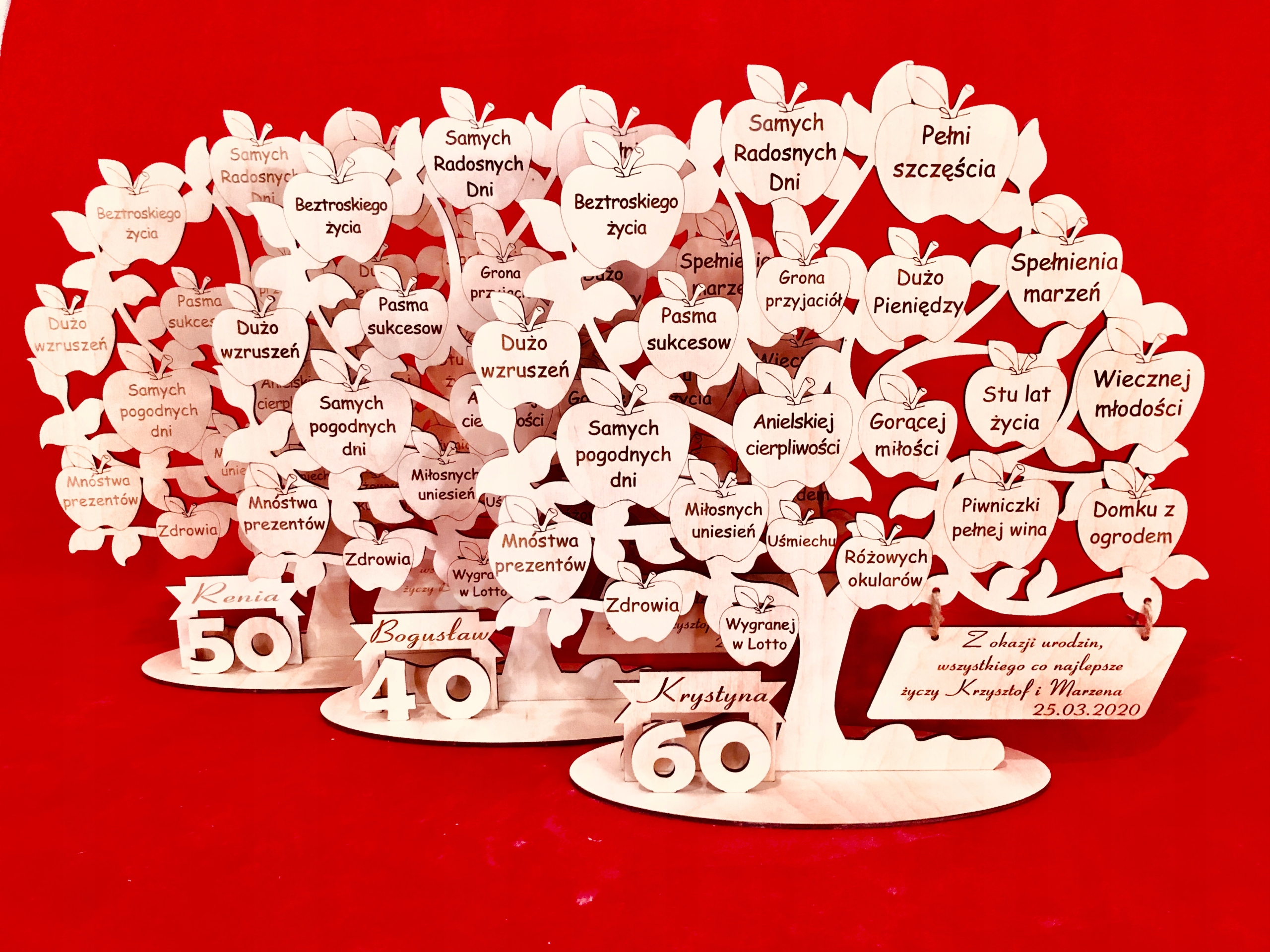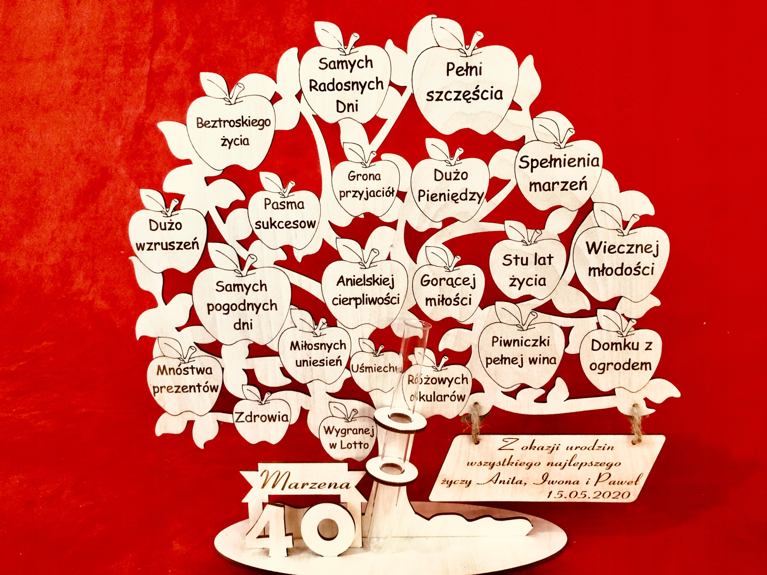 ➡️ Przepięknie wycięte ze sklejki i grawerowane drzewko z życzeniami dla solenizanta.