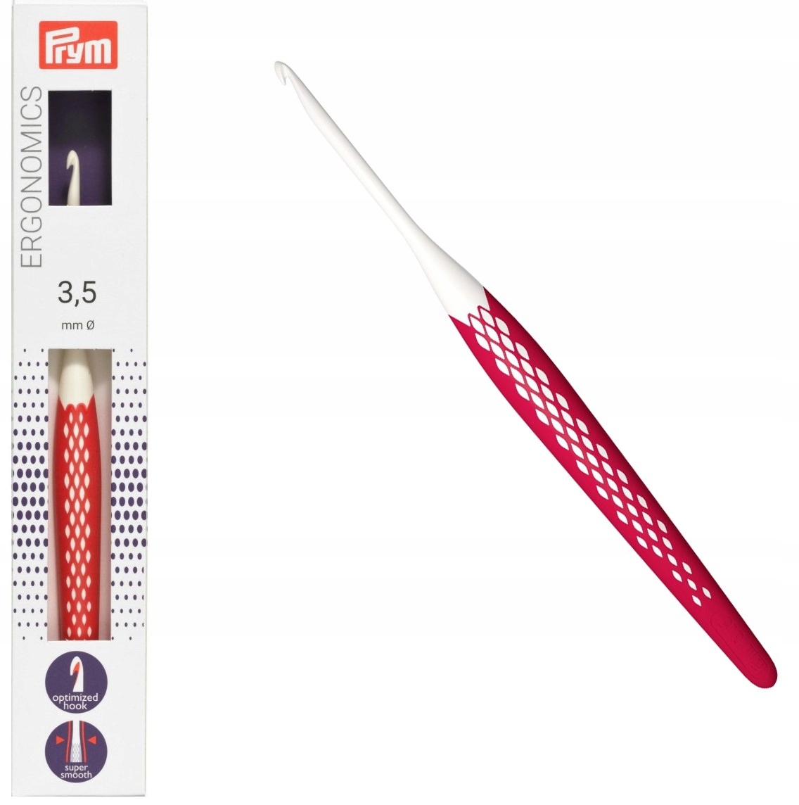 Szydełko posiada długość ok. 16 cm i haczyk o szerokości 3,5 mm. Szydełka Prym Ergonomics posiadają różne kolory rączki w zależności od swojej grubości, dzięki czemu łatwo można je rozróżniać.
