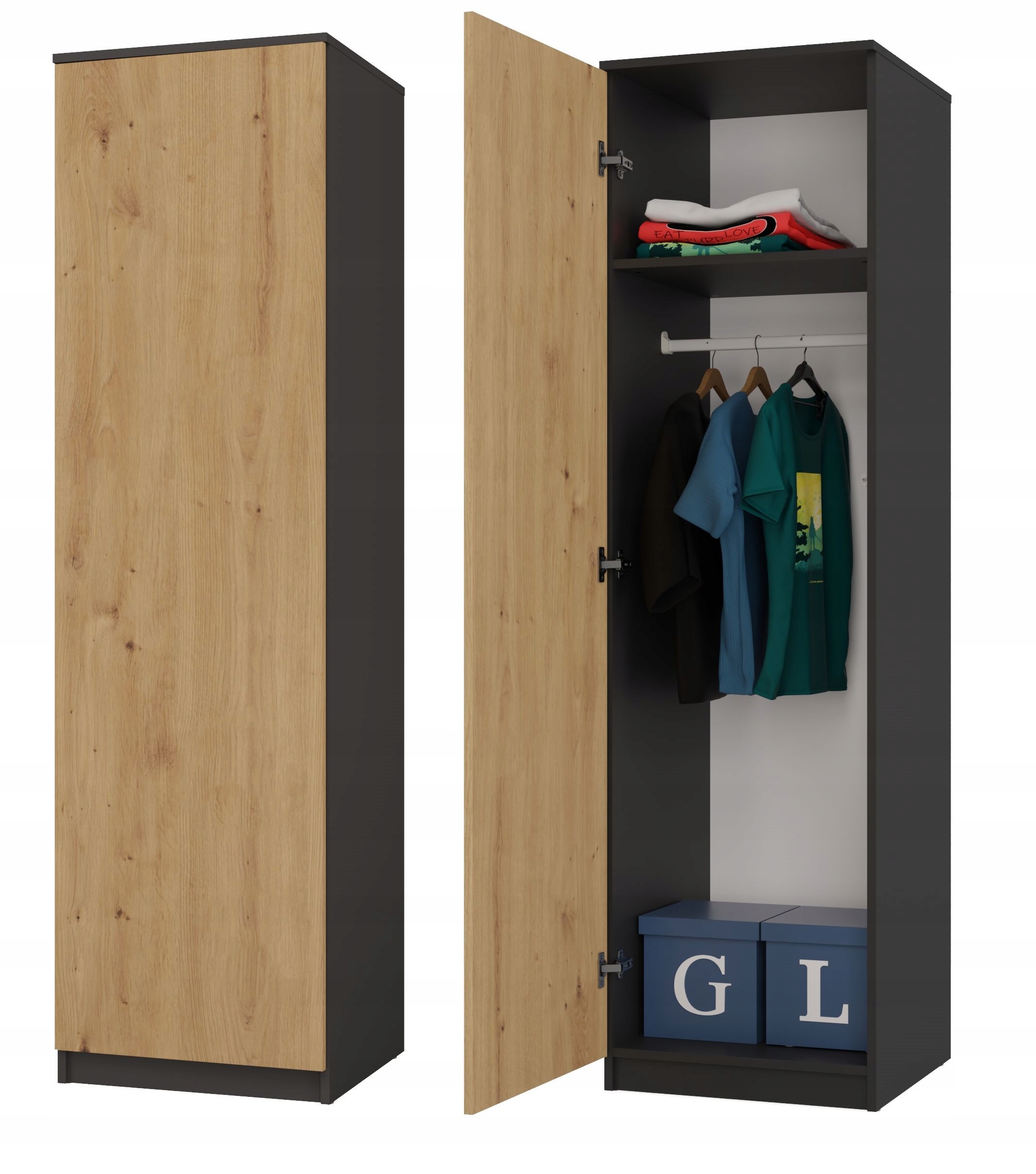 Szafa SD-50 to praktyczny mebel, który znajdzie swoje miejsce zarówno w sypialni, gdzie posiadamy garderoby, ale również w biurze czy pracowni, gdzie dokumenty musza mieć swoje miejsce oraz można schować ubranie wierzchnie.