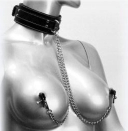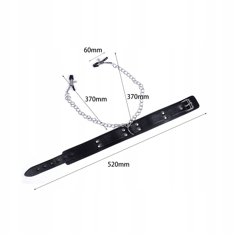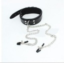 Gadżet erotyczny - skórzana obroża z klipsami na sutki. BDSM.