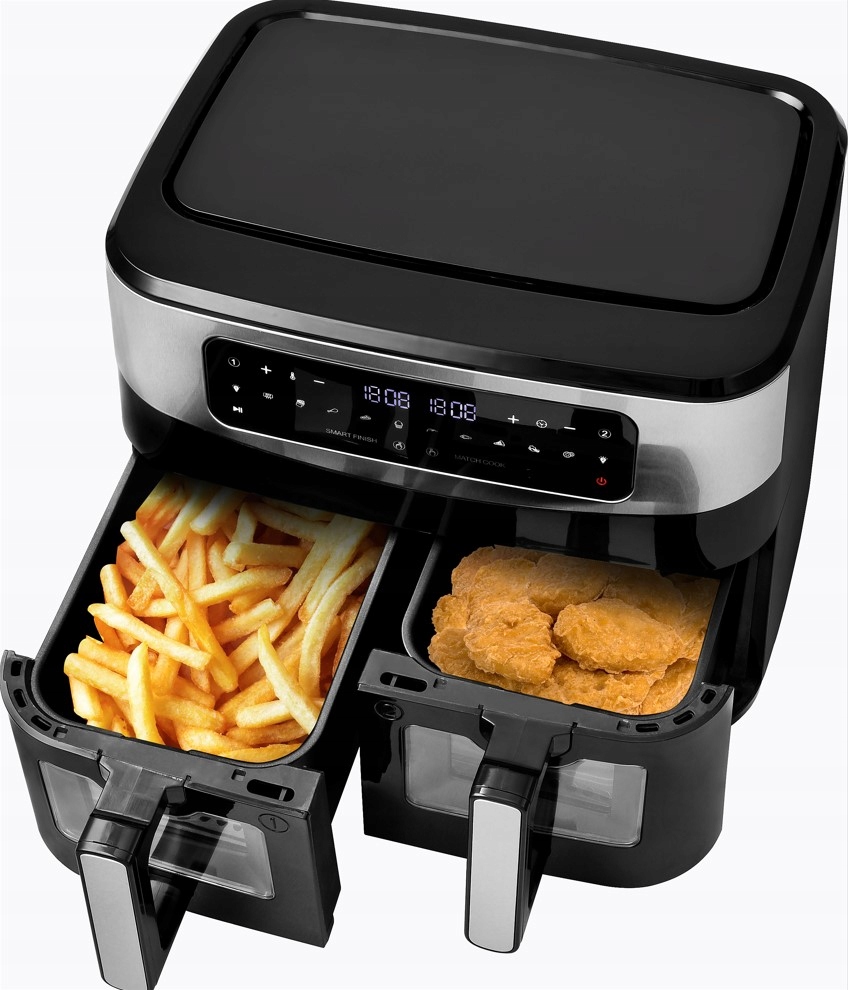 Откройте для себя незаменимый вкус и удовольствие от здорового жарки с новой двойной обезжиренной фритюрницей XXL 9 литров! Незаменимый оборудование для любого любителя вкусных, но прежде всего полезных блюд.