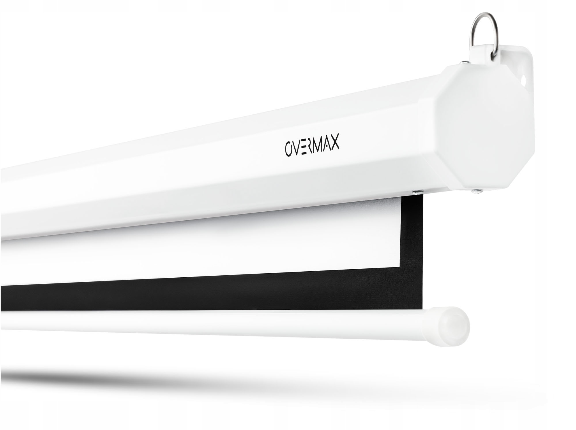 Wystarczy użyć śrub lub haków i kołków rozporowych, aby szybko przymocować ekran OVERMAX Semi Automatic Screen 100 do ściany lub sufitu. Rozkładanie trwa kilka sekund.