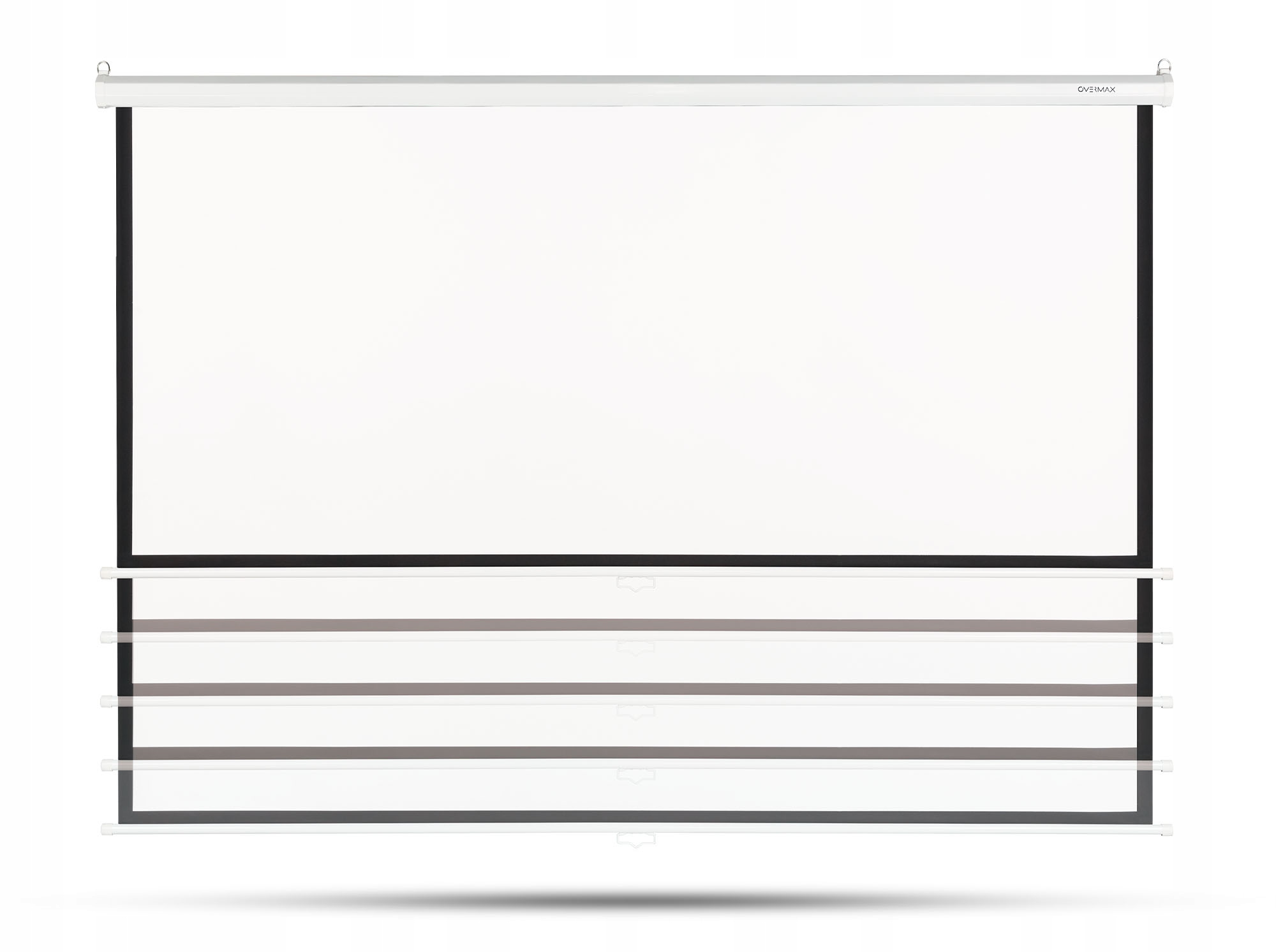 Wystarczy użyć śrub lub haków i kołków rozporowych, aby szybko przymocować ekran OVERMAX Semi Automatic Screen 100 do ściany lub sufitu. Rozkładanie trwa kilka sekund.