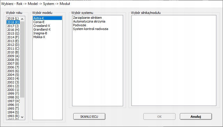 Oryginalny interfejs OPEL SCANNER CAN USB we wtyku OBD2 + płyta CD z oprogramowaniem przeznaczony do diagnozy samochodów marki Opel w latach 1987-2021 (linia K oraz CAN). Interfejs umożliwia diagnozę praktycznie wszystkich systemów zarządzania silnikiem, automatyczną skrzynią biegów, systemów podwozia, systemów kontroli nadwozia takich jak np: SILNIK, ABS, AIRBAG itp. Menu + parametry w j. polskim.