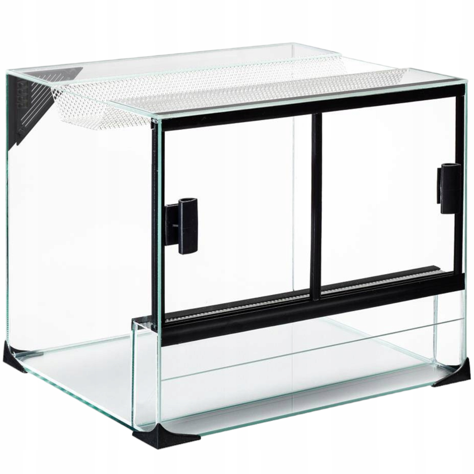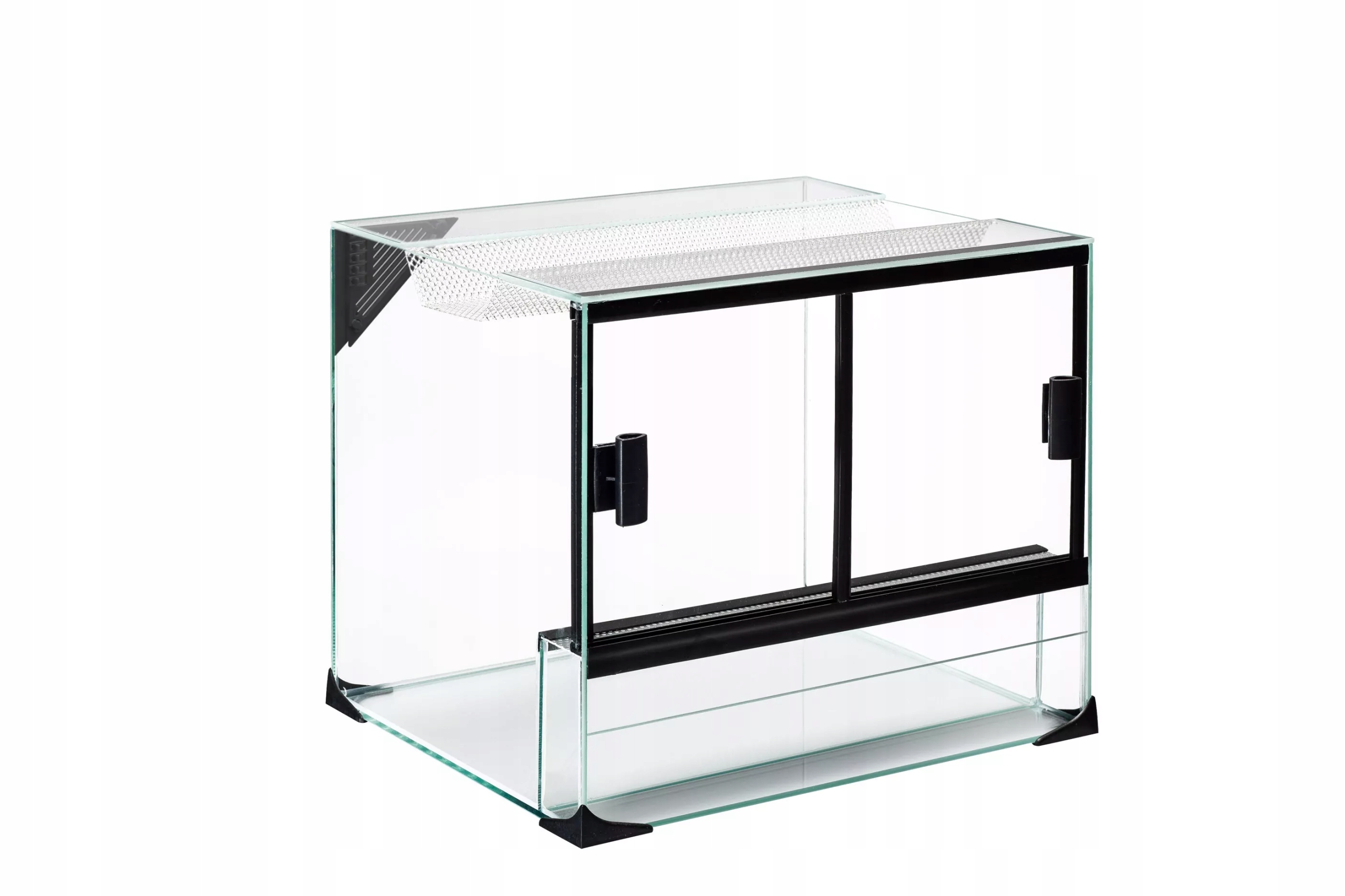 Terraset Turtle 45x32,5x35 to kompletny zestaw przeznczony dla miłośników terrarystyki tropikalnej, w skład którego wchodzą: terrarium z przesuwnymi drzwiami, pokrywa oświetleniowa z miejscem na dwie żarówki o mocy max 26W każda ,filtr wewnętrzny Claro 300, skałka, termometr oraz miska na wodę lub pokarm. Wysokiej jakości terrarium tropikalne.