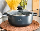 ✔️ Гранит / мрамор покрытие кастрюли и сковородки также позволяют жарить, используя минимальное количество жира, потому что сосуд нагревается подобно камню и отдает тепло всей своей поверхностью.