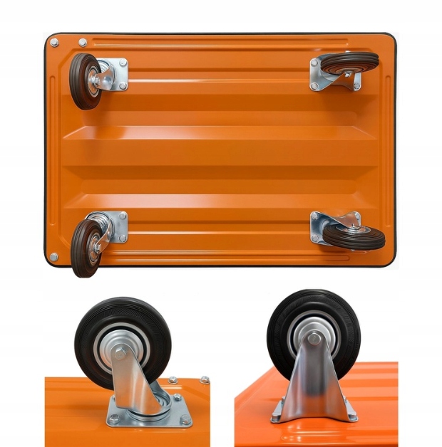 Рама тележки с порошковым покрытием, что повышает его коррозионную стойкость. Однако стоит избегать длительного контакт с водой и хранить тележку в сухом месте.