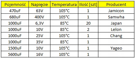 Производитель Inna (Yageo, Lelon, Japan, Chang, Samwha, Jamicon)