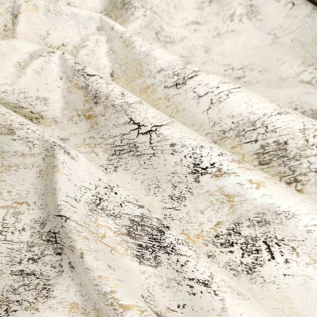 Złoto srebrny nadruk na tym rodzaju weluru sprawia wrażenie delikatnie nieregularnej struktury powierzchni i jest pięknie błyszczący.