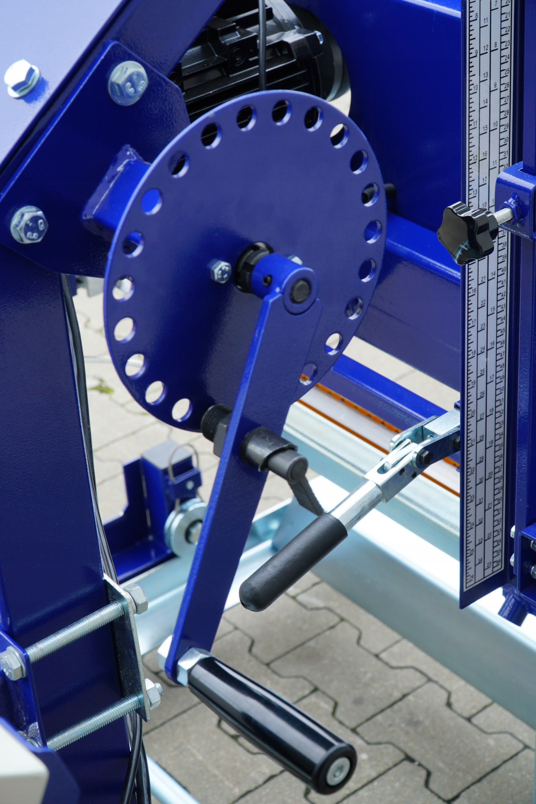 W maszynie zastosowanych jest kilka dodatkowych rozwiązań czego nie ma w poprzednich wariantach. Przede wszystkim maksymalna szerokość cięcia to 70cm. Cały zestaw w opcji standardowej ma 6 metrów długości. Obecnie największy model z oferty firmy Koronet.