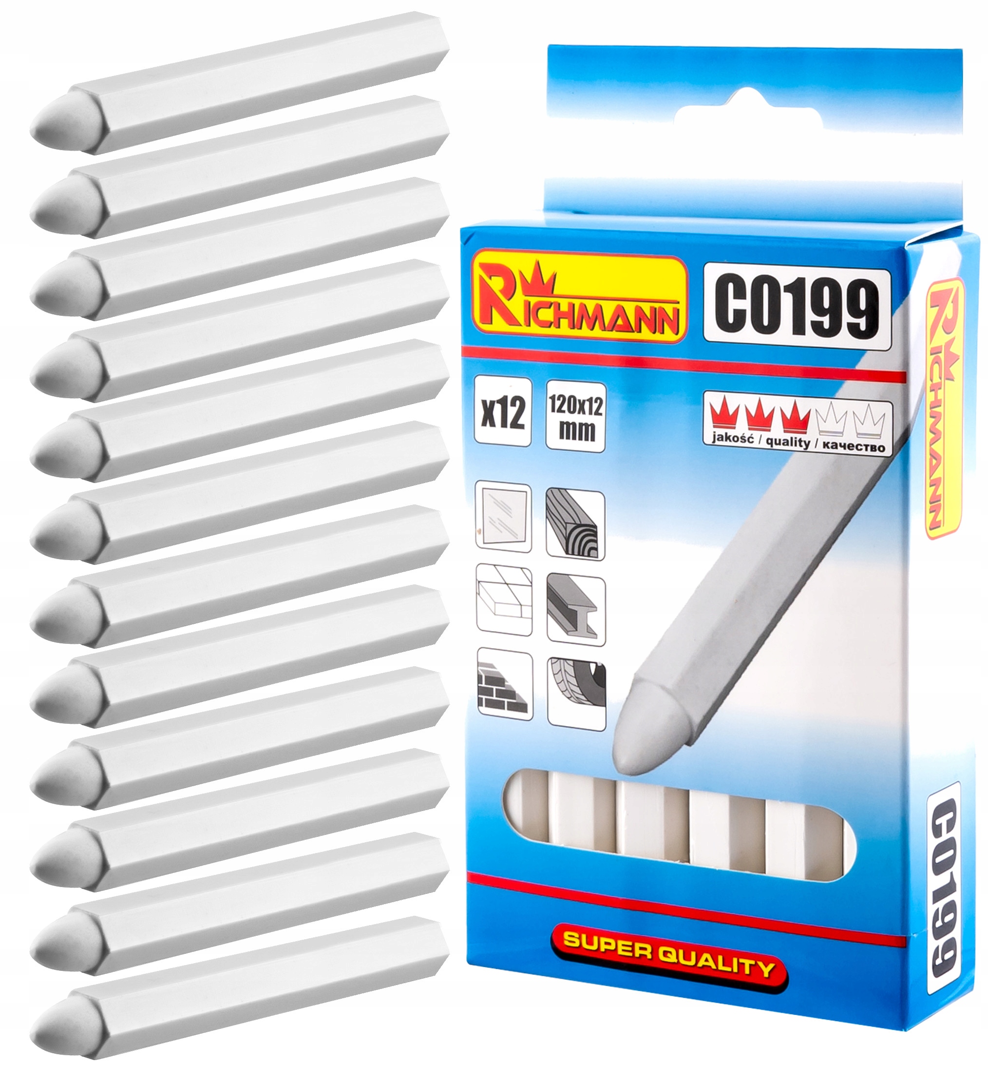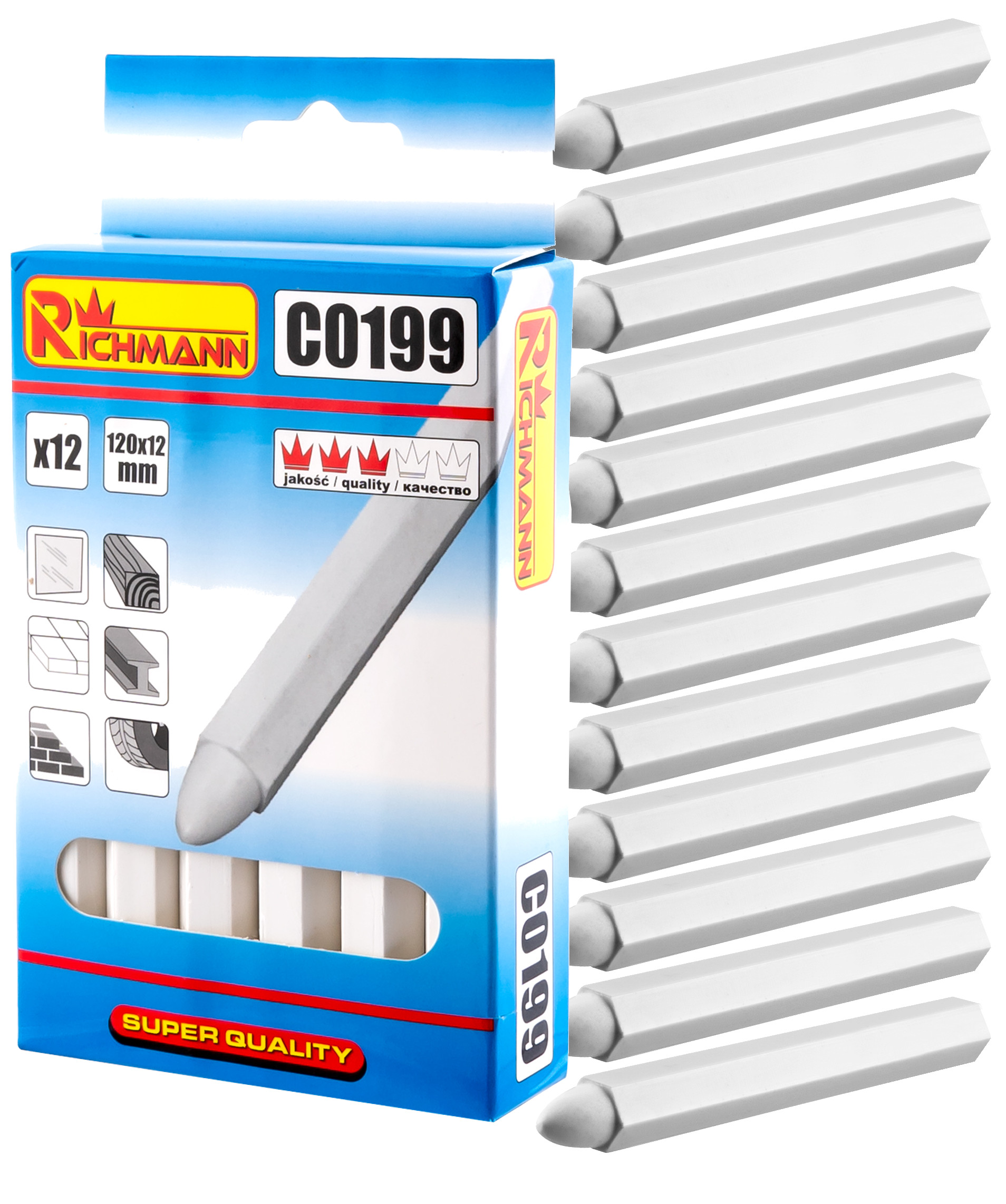 Kreda techniczna o wymiarach 120 x 12 mm w kolorze białym.