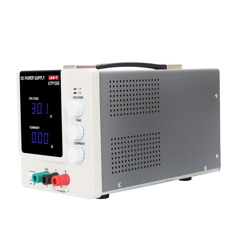UTP1305 produkcji Unit to zasilacz laboratoryjny pojedynczy czyli z jednym wyjściem napięcia stałego DC regulowanego w zakresie od 0V do 32V. Regulacji napięcia wyjściowego możemy dokonywać płynnie przy pomocy potencjometrów. Wydajność prądowa czyli maksymalny prąd wyjściowy to 5A w całym przedziale napięć wyjściowych. Czyli praktycznie bez względu czy mamy ustawione napięcie wyjściowe 3,3V lub 5,0V lub nawet maksymalne 30V to zasilacz w razie potrzeby do 5A do zasilanego odbiornika.. Może być wykorzystane do wielu urządzeń i modułów elektronicznych. Zasilacz może być wykorzystywany z powodzeniem wykorzystywany przez hobbystów, elektroników amatorów jak także przy pracach w laboratoriach, serwisach warsztatach. Konstrukcja zasilacza UTP1305 jest oparta na transformatorze co zapewnia jego bardziej stabilną i bezawaryjną pracę w stosunku do konstrukcji opartych na przetwornicy impulsowej. Zasilacz UTP1305 jest wyposażony w dwa wyświetlacze LED siedmio-segmentowe świecące w kolorze niebieskim.