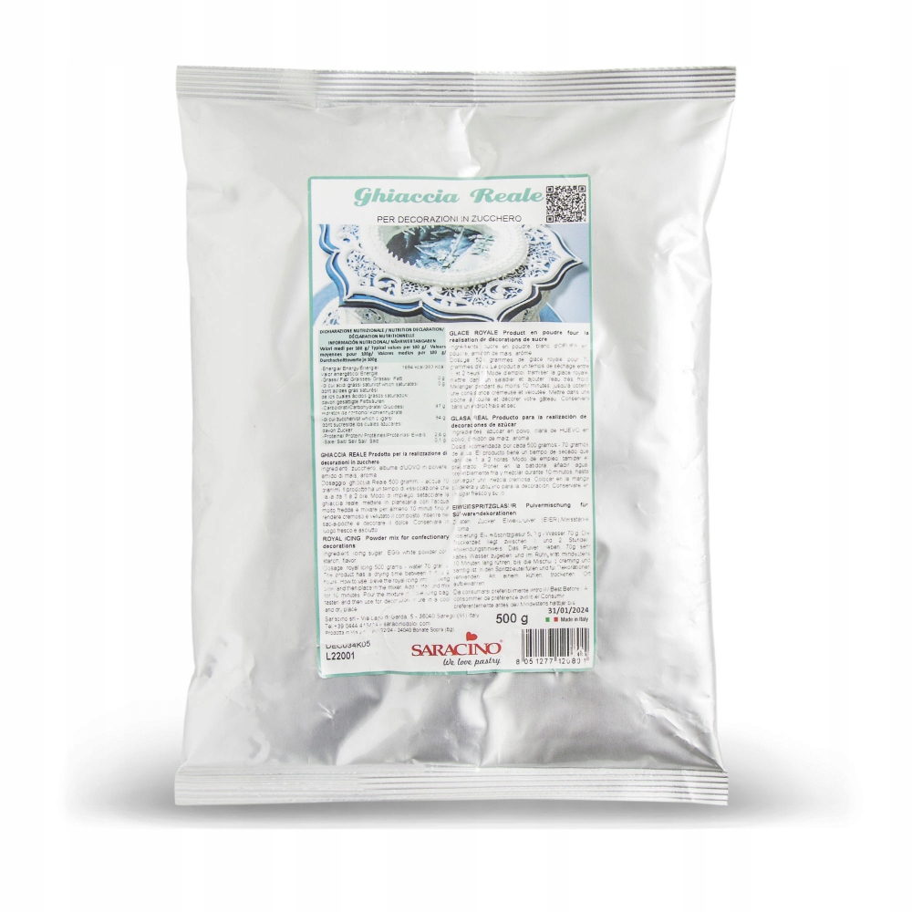 Lukier Królewski Saracino do ozdabiania tortów, ciast, ciasteczek, bardzo łatwy w użyciu- wystarczy dodać wody. Lukier nadaje się do samodzielnego barwienia.