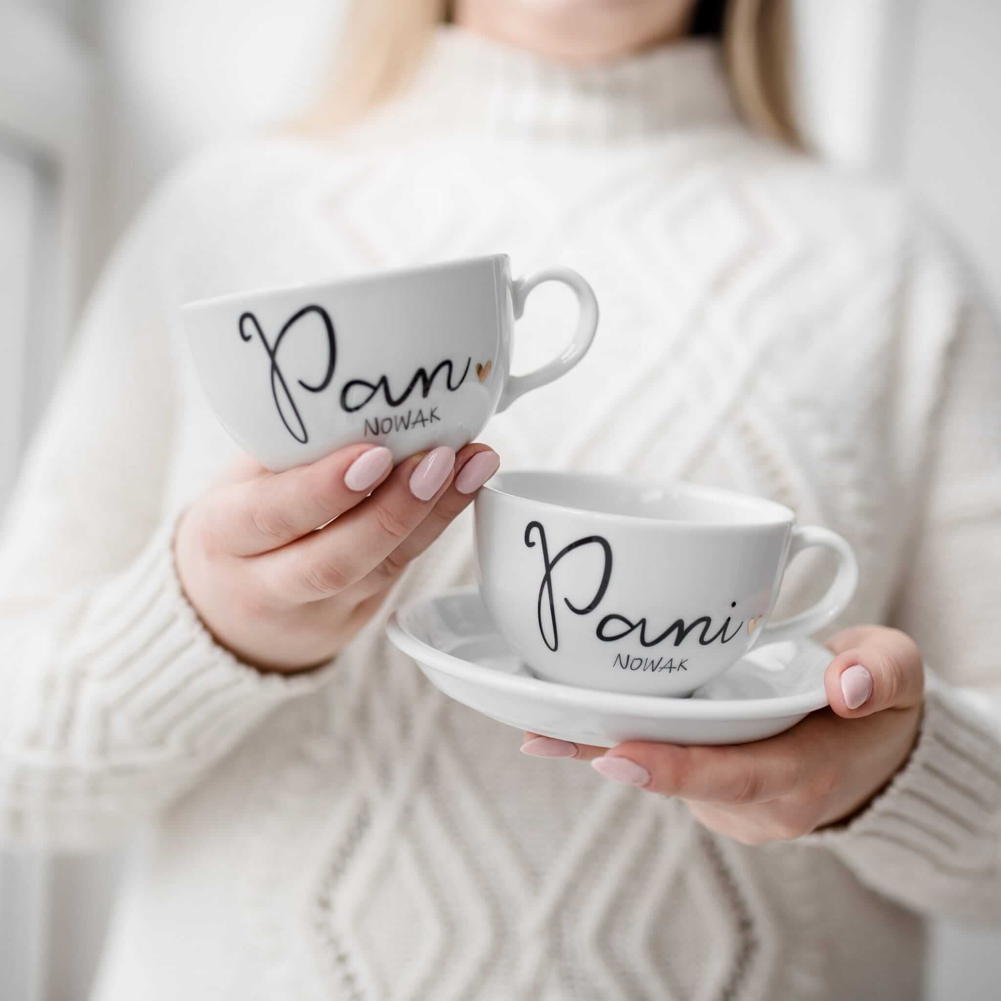 A to, co ucieszy ich jeszcze bardziej to moment, gdy spoglądać będą na napis znajdujący się na filiżankach, który przypominać im będzie, że połączyło ich coś naprawdę cennego, coś poważnego i coś, co trwać będzie całe życie… bo teraz są Panem i Panią, których połączyło to samo nazwisko.