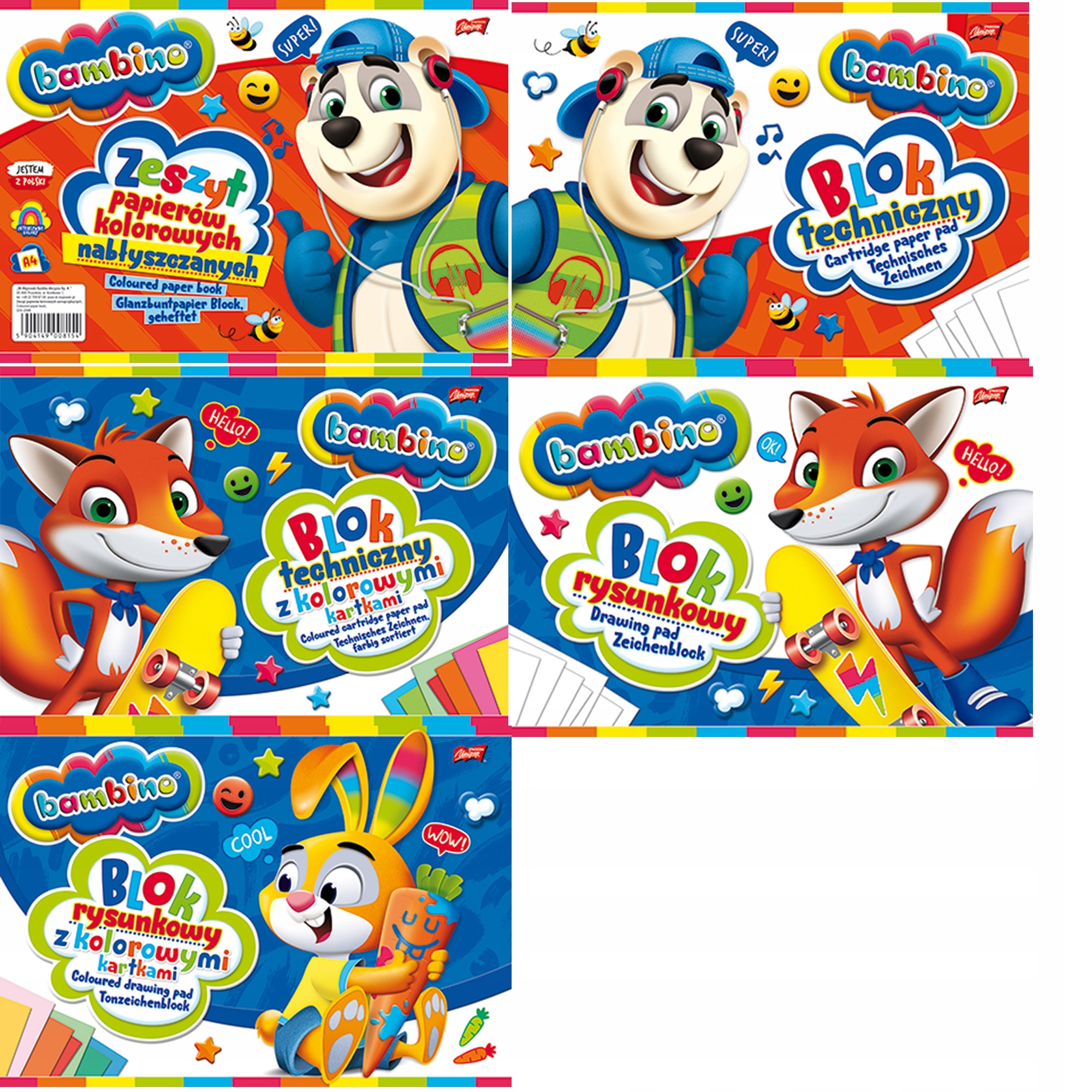 Bardzo duży, kompletny zestaw podstawowych artykułów plastycznych opierający się na produktach BAMBINO. Jest doskonałym rozwiązaniem przy kompletowaniu wyprawki szkolnej dla dziecka