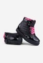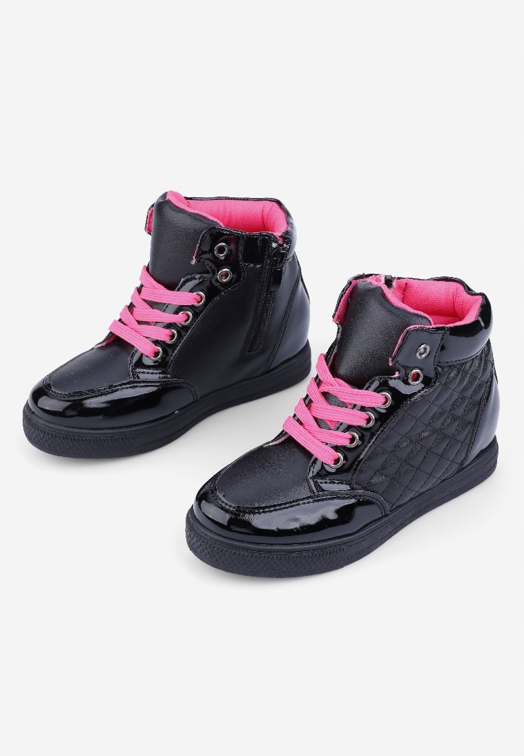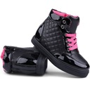 Sneakersy dziecięce ,na niskim obcasie i uktytym koturnie .Wierzch został wykonany z materiału tekstylnego w połaczeniu z lakierkiem. Zapinane na suwak z boku, dodatkowo posiadają sznurowadła. Do sportowych ,lużnych strojów ,bedą idealne .