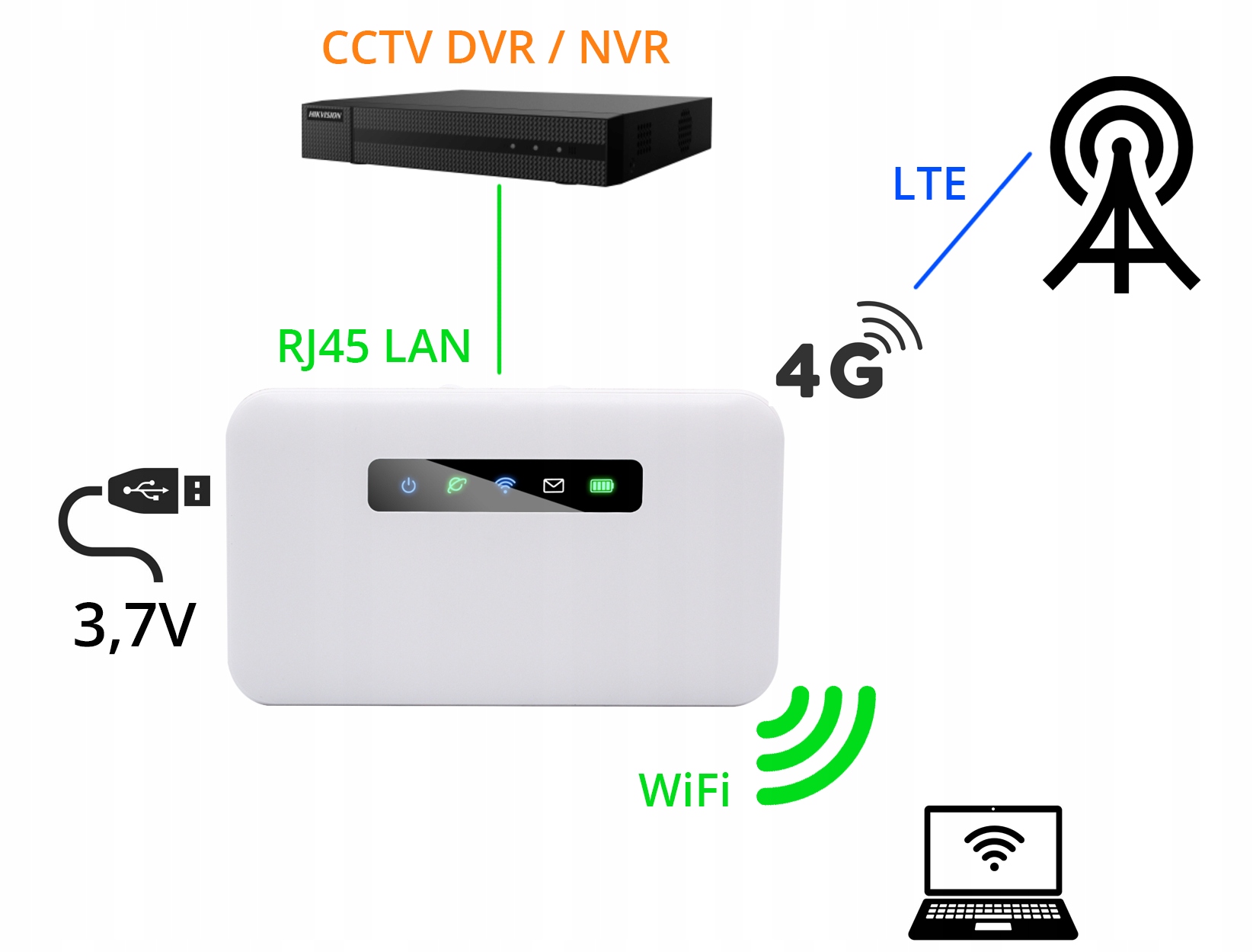 SF-MIFI-4G-UPS-это компактный маршрутизатор LTE WiFi для беспроводная связь на основе сети 4G. работа с видеорегистраторами CCTV, обеспечивая стабильное подключение к интернету с системой мониторинга через сеть мобильной связи.
