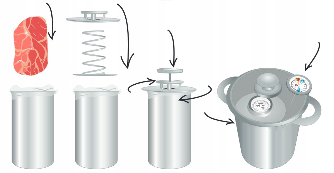Ponieważ w trakcie parzenia istotnym parametrem jest temperatura zarówno mięsa, jak i wody, dobrze jest wyposażyć się również w termometr umożliwiający taką kontrolę.