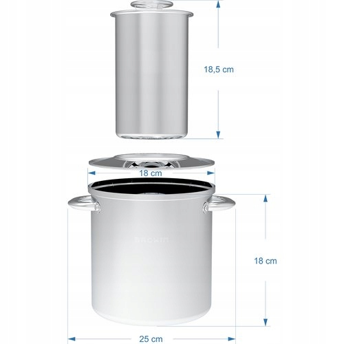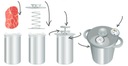 Dzięki odpowiedniej konstrukcji szynkowar opiera się na kołnierzu i nie dotyka dna garnka, dzięki czemu woda otula szynkowar, tworząc tak zwany płaszcz wodny, co optymalizuje efektywność pracy zestawu.