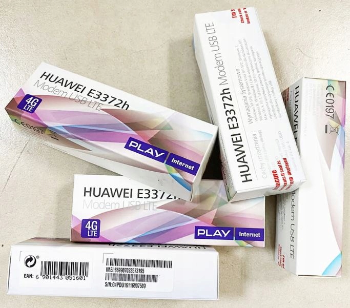 NOWY modem HUAWEI E3372 h w opakowaniu i z oznaczeniami na obudowie PLAY. Nie posiada żadnych blokad simlock , gotowy do pracy w dowolnej sieci.