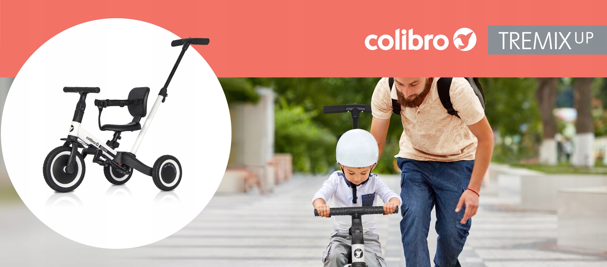 TREMIX UP jest rowerkiem dziecięcym 6w1. Dzięki niezwykle prostemu opatentowanemu systemowi zmiany funkcji rowerka, TREMIX UP może być wykorzystywany na 6 różnych sposobów w zależności od wieku dziecka i jego umiejętności.