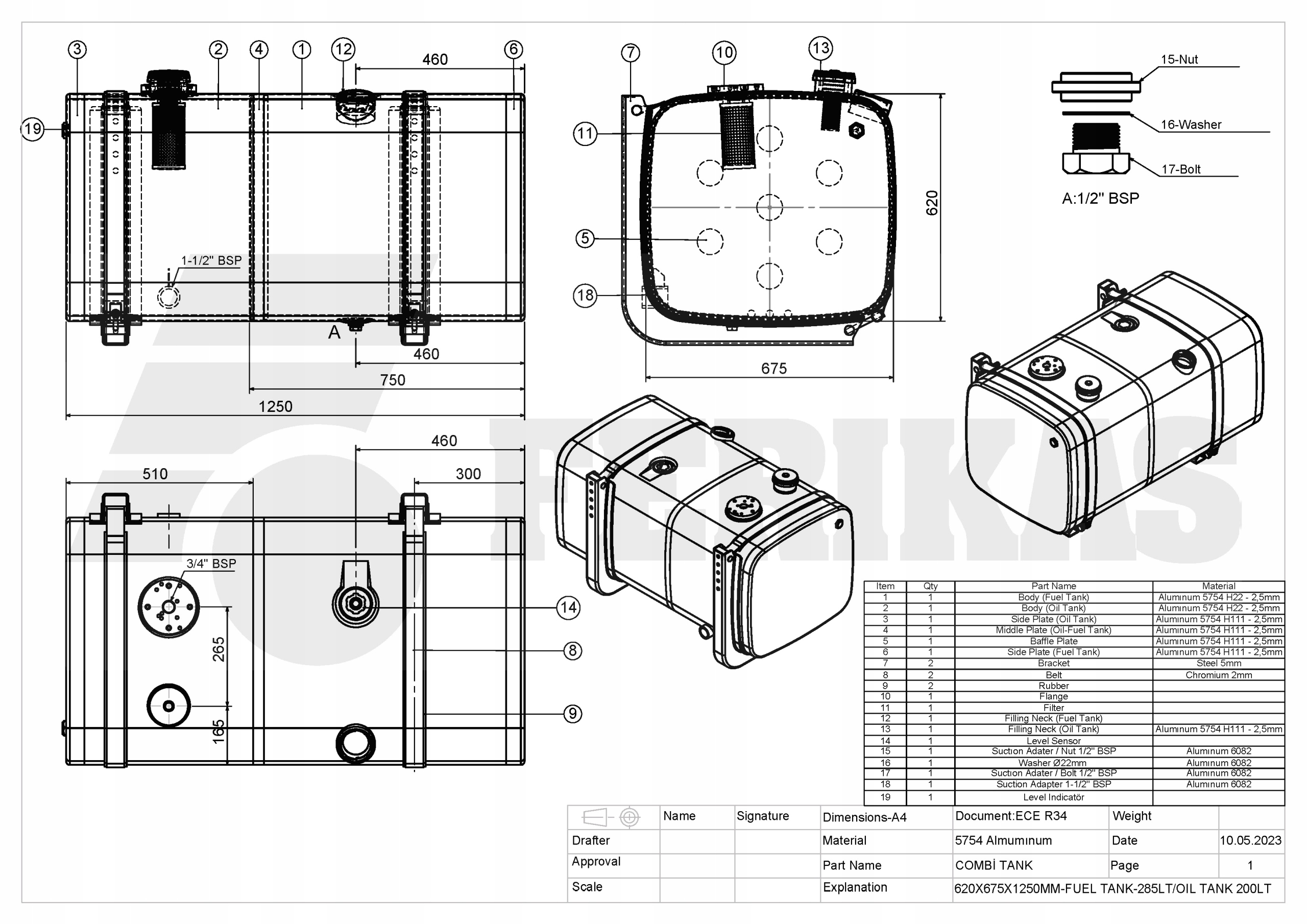 Nasze zbiorniki są wykonane z greckiego aluminium o grubości 2,5 mm, powlekanego z obu stron polimerem – tym samym materiałem, który jest stosowany w oryginalnym wyposażeniu zbiorników paliwowych i hydraulicznych.