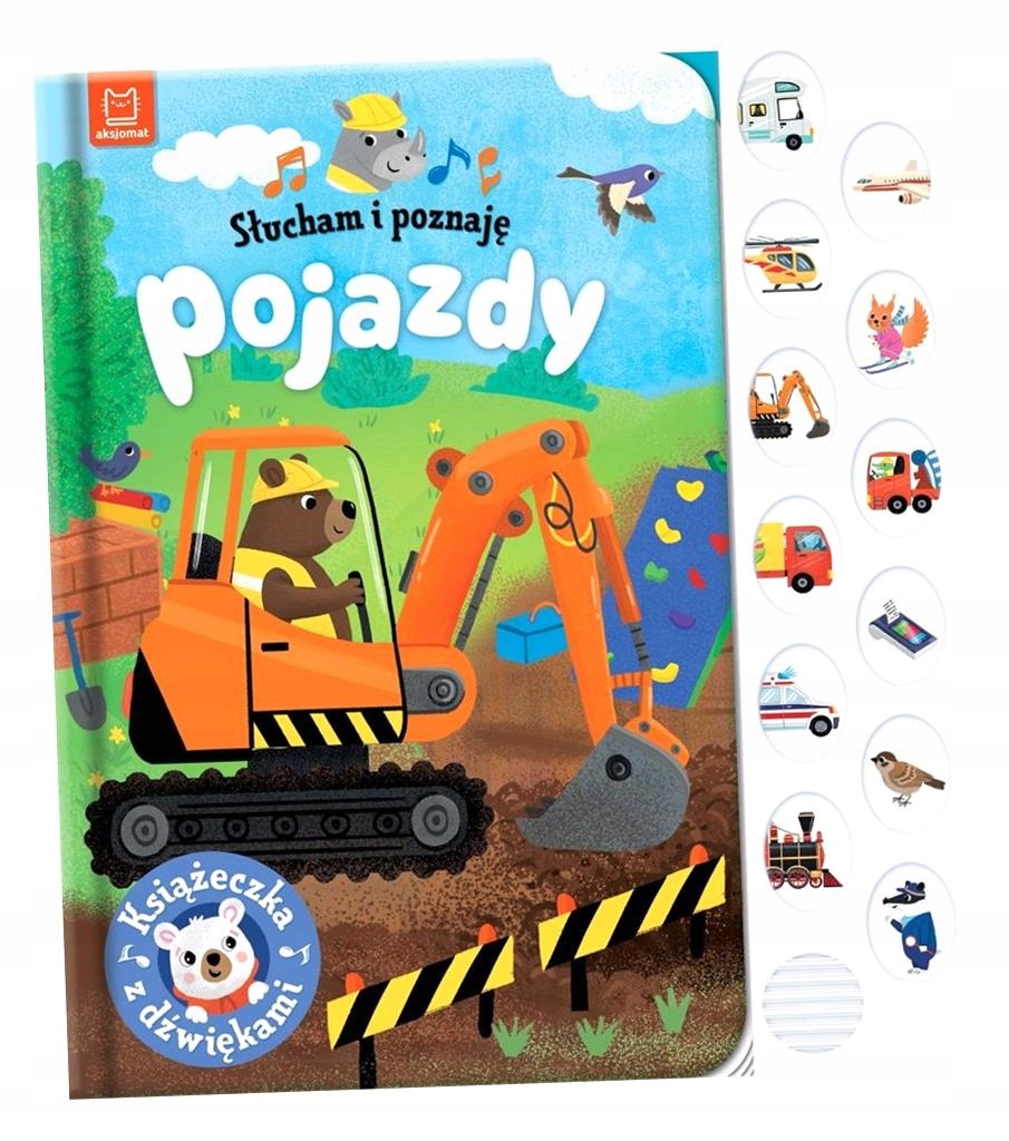 Książka dla małych miłośników motoryzacji, a w niej bogate ilustracje oraz wierszowane historyjki. Dodatkową atrakcją są dołączone dźwięki. Posłuchaj, jak brzmią: kamper, samolot, helikopter, koparka, radiowóz, lokomotywa oraz inne pojazdy, zwierzęta i przedmioty pokazane w książce. Do czytania, słuchania i oglądania!