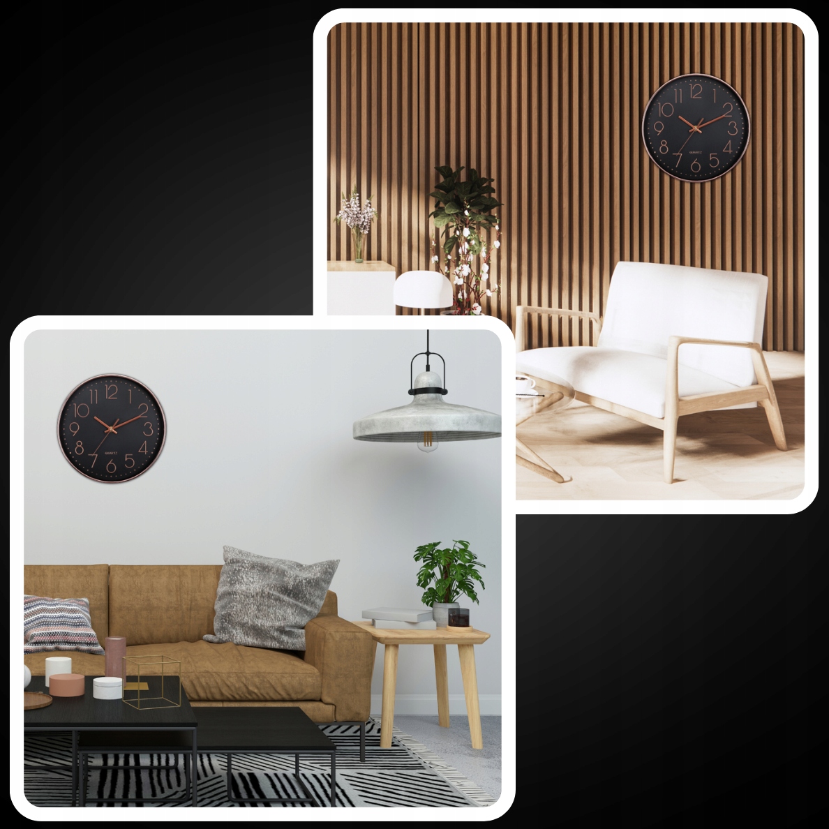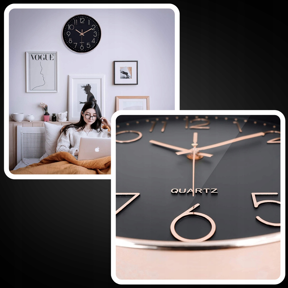 ⭐Niech Twój dom lub biuro błyszczy niezrównanym stylem. Wybierając nasz Zegar Ścienny Czarny z Akcentami Różowego Złota, inwestujesz nie tylko w precyzyjny sposób mierzenia czasu, ale również w niezwykłą dekorację, która odmieni każde wnętrze. Czas jest bezcenny, ale sposób, w jaki go prezentujemy, również ma znaczenie. Wybierz wyjątkowość.
