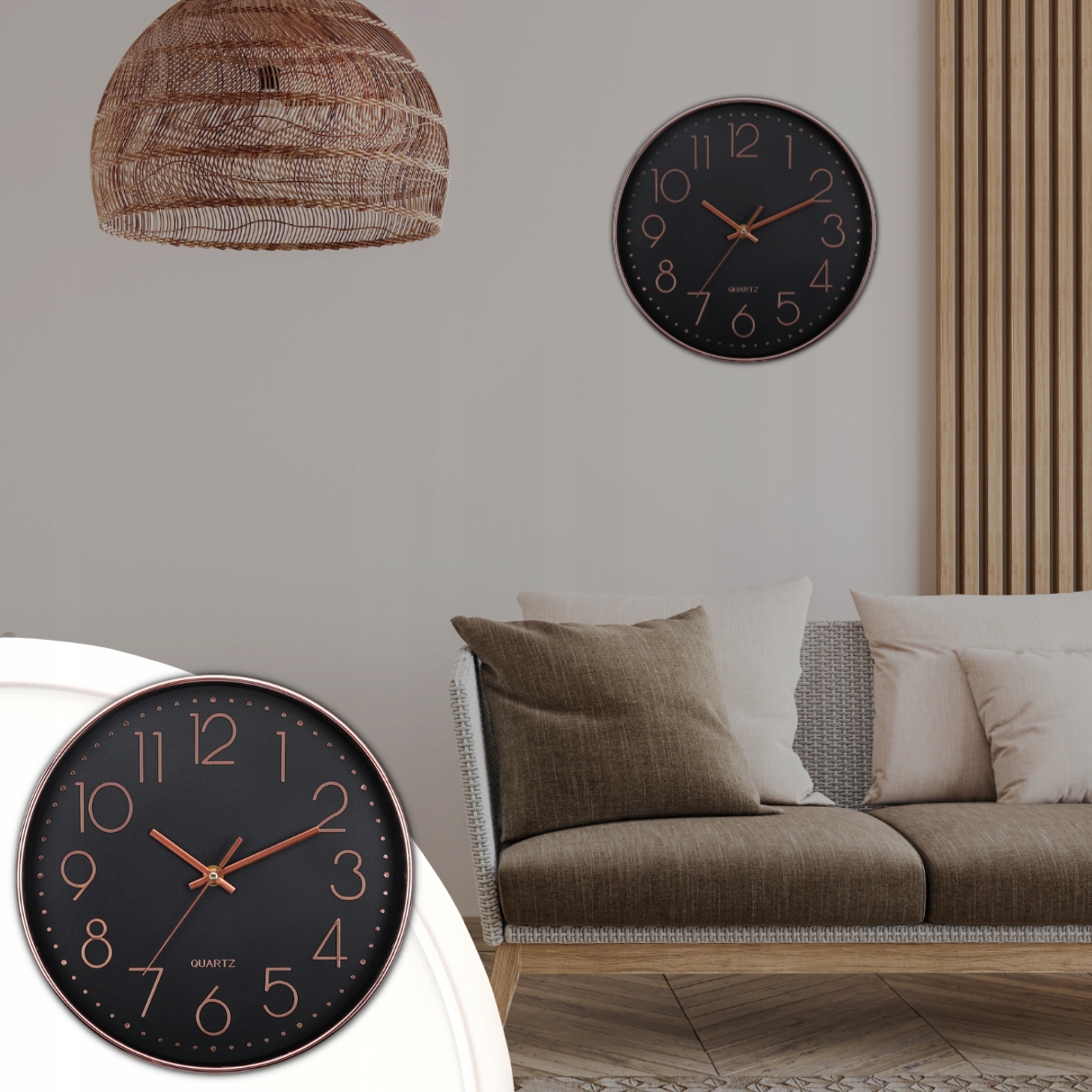Круглые настенные часы-черный с оттенком розового золота-премиум дизайн⭐⭐⭐⭐⭐